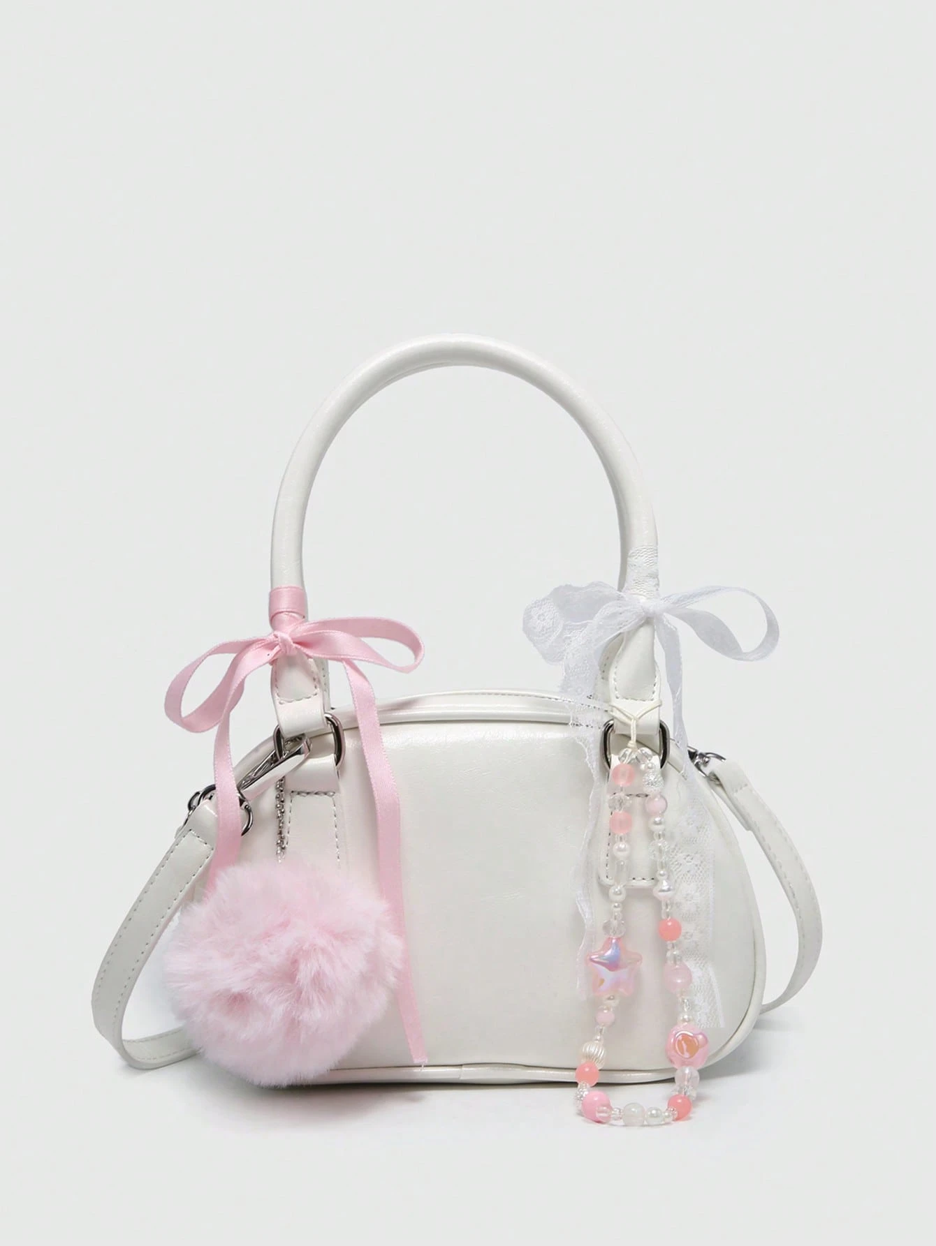 Bolso de mano mini con decoración de lazo, perla y cereza con estilo de ballet para mujer