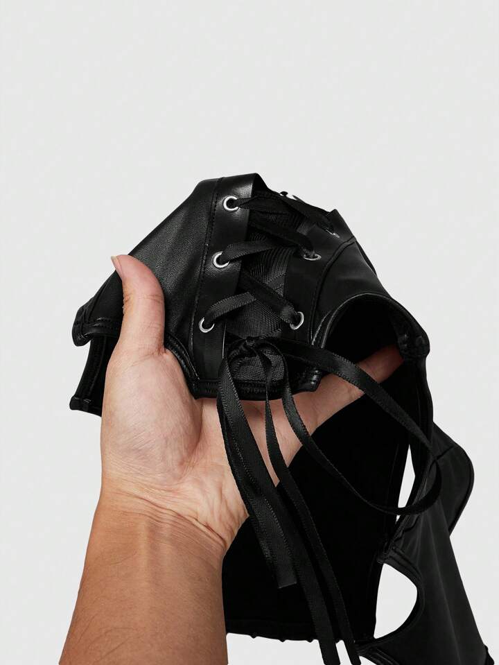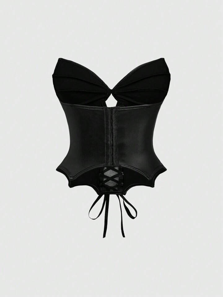 Goth Top bandeau con diseño de alas de murciélago de PU estilo gótico oscuro para mujer
