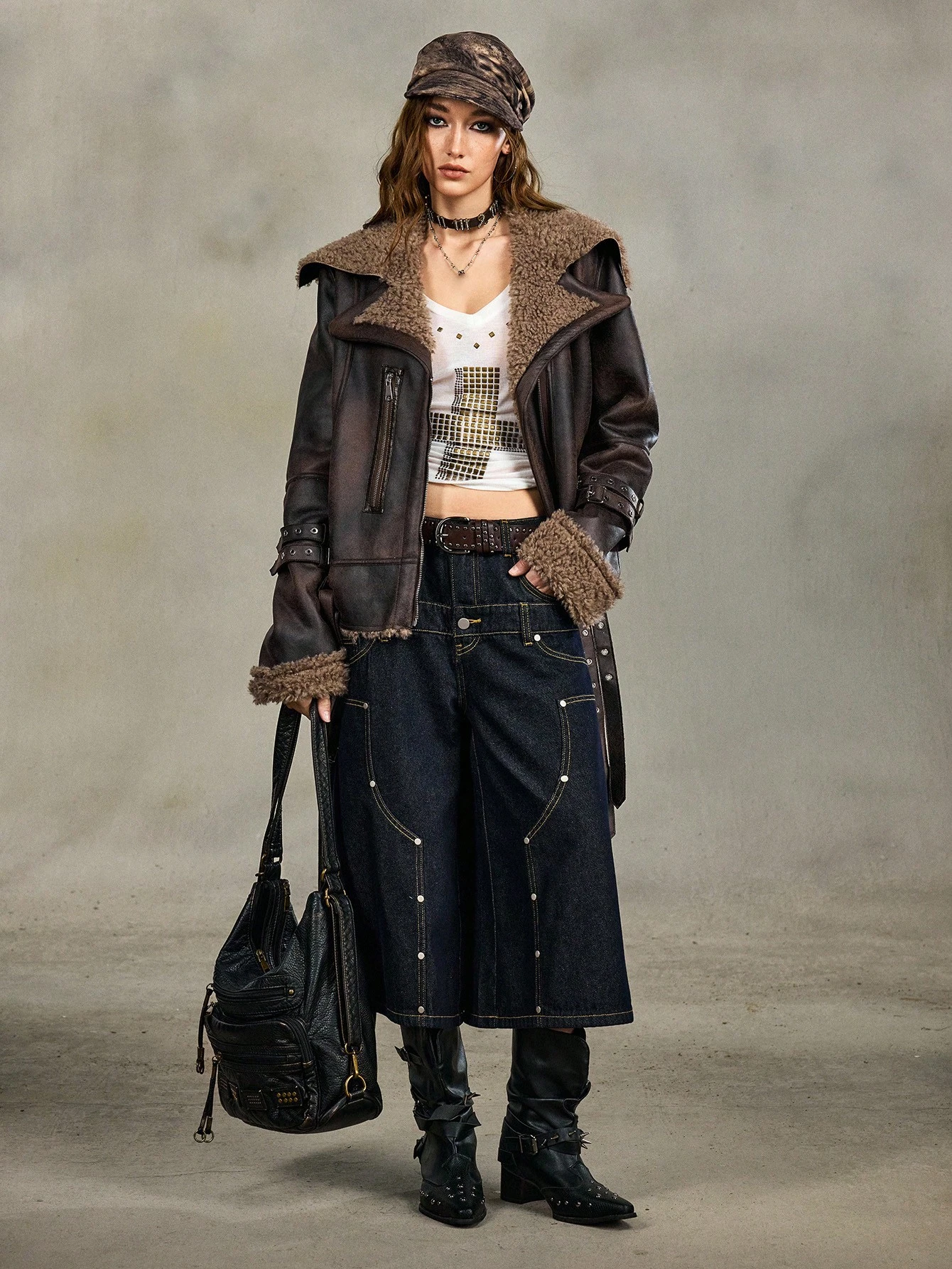 Chaqueta vintage desgastada de mujer con estilo Y2K grunge PUNK