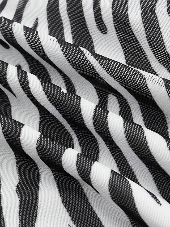 Vestido con cuello en pico con volantes, estampado de cebra y bajo de cola de pez, elegante para mujer