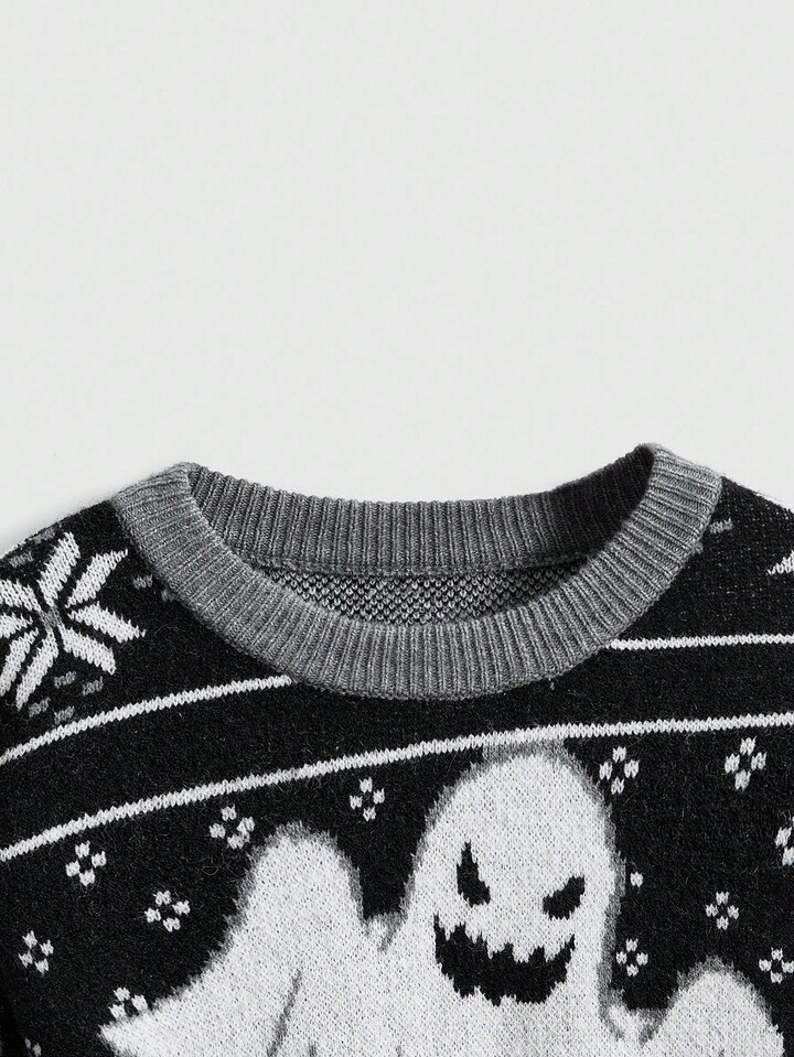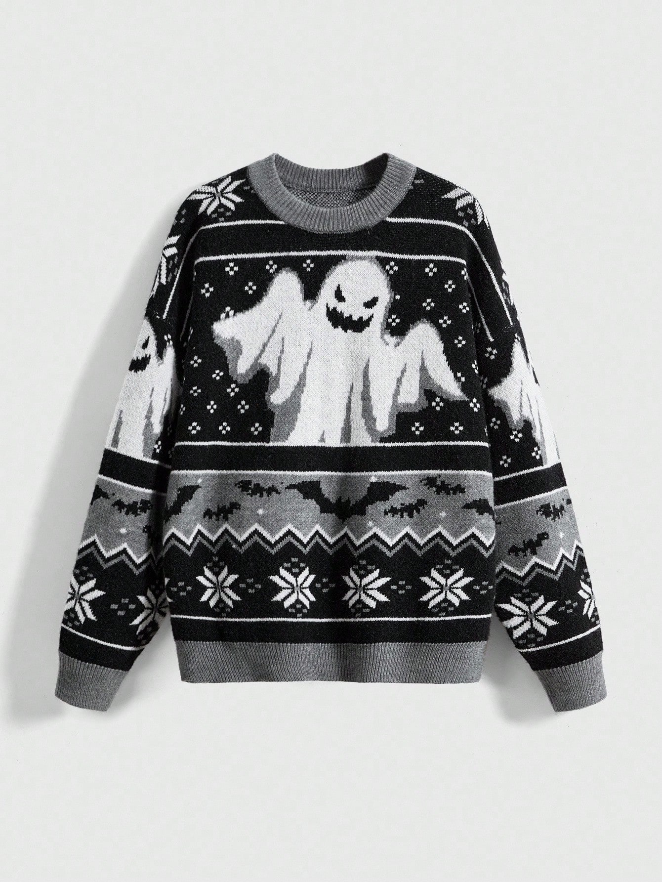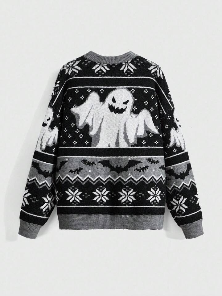 Goth Suéter de mujer con estampado jacquard de fantasmas y murciélagos, Halloween