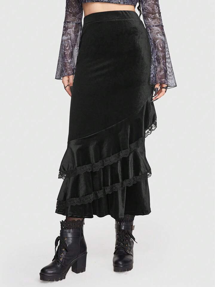 Goth Falda Midi De Fiesta Ceñida Al Cuerpo Con Dobladillo Con Volantes De Sirena Gótica Para Mujer Para La Víspera De Año Nuevo