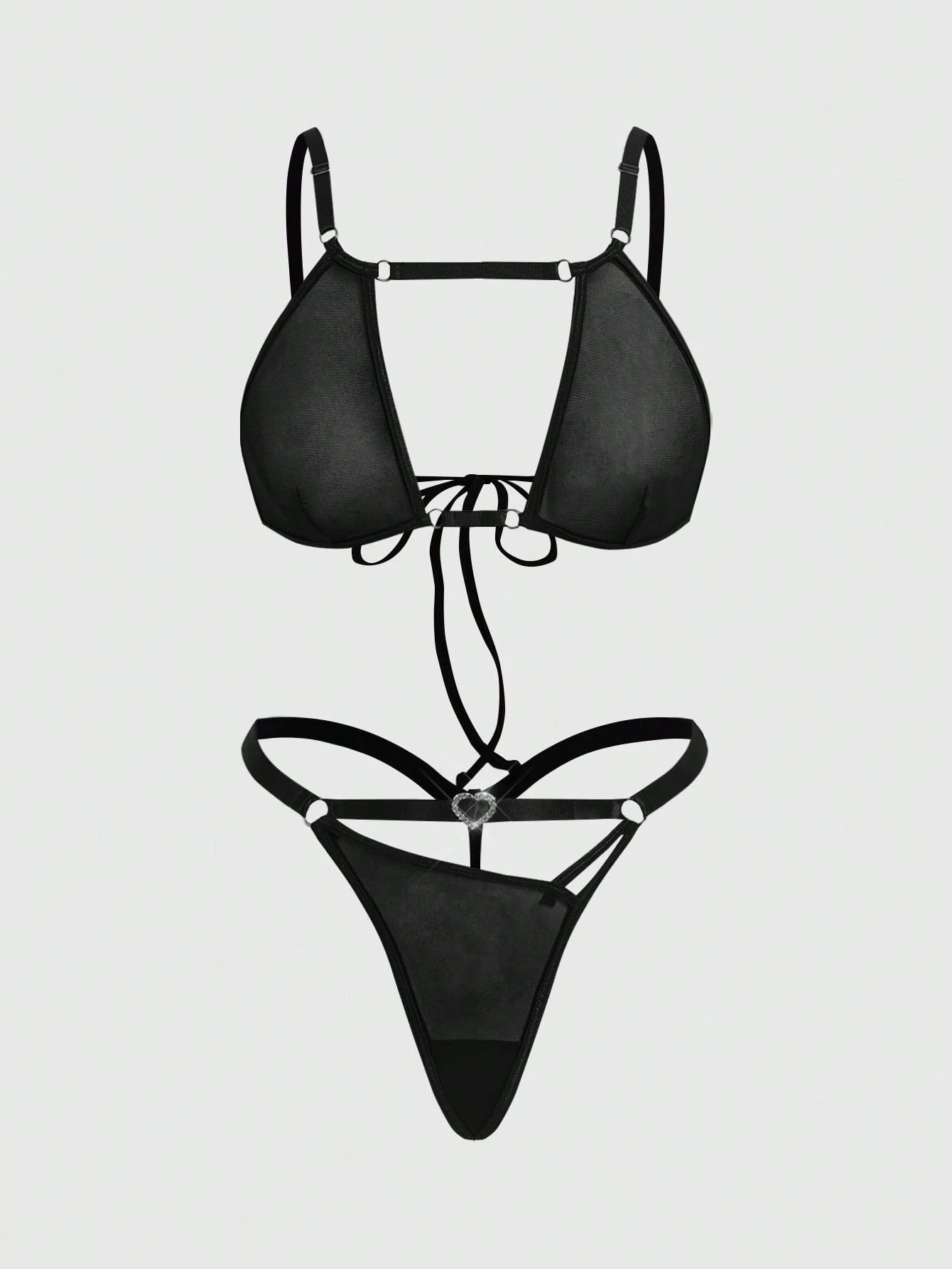 Goth Conjunto de lencería sexy de sujetador de malla triangular y tanga gótico para mujer