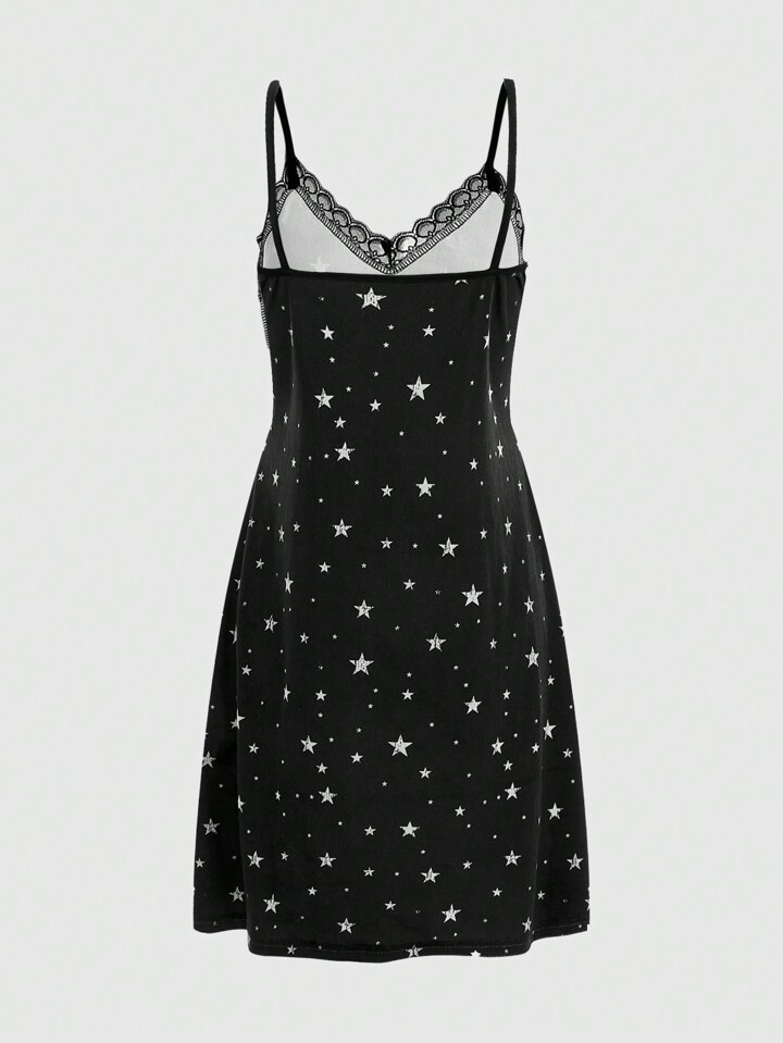 Goth Vestido Para El Hogar Con Adornos De Encaje Y Camisola De Terciopelo Con Estampado De Estrellas Plateadas Góticas Para Mujer