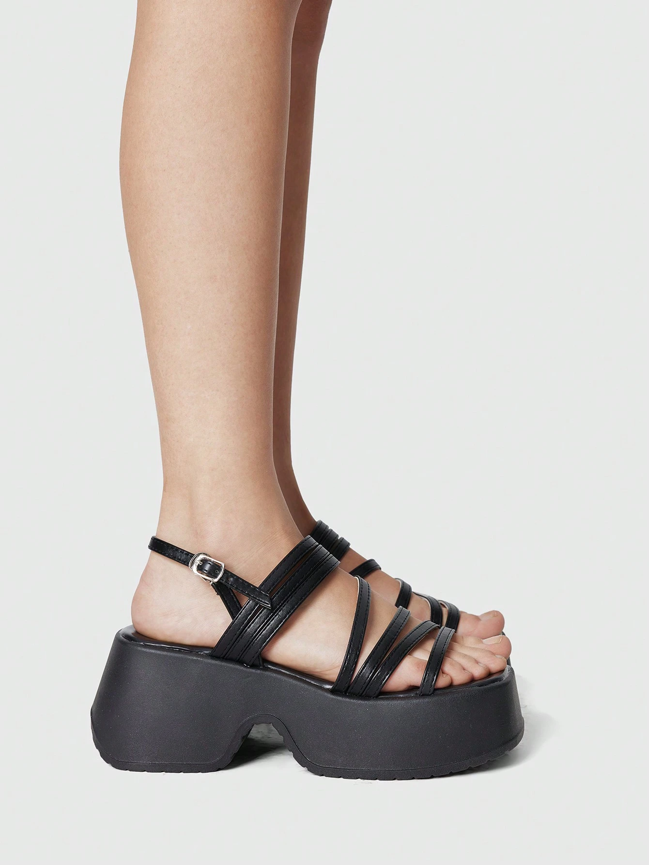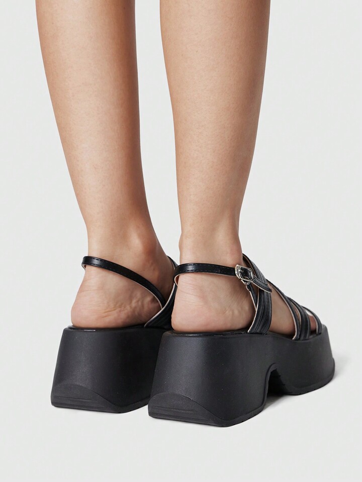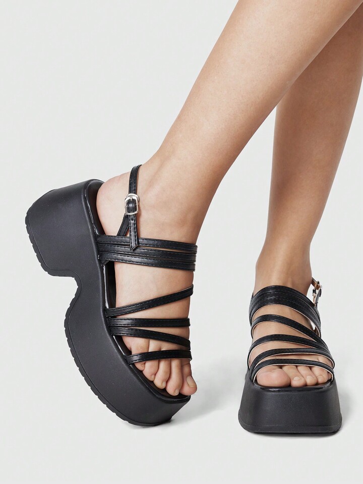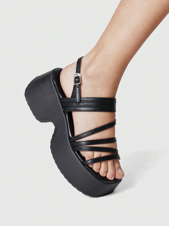 Goth Sandalias de verano casuales de estilo gótico para mujer con múltiples correas y punta abierta, sandalias de plataforma y cuña de estilo punk rock para vacaciones, Halloween