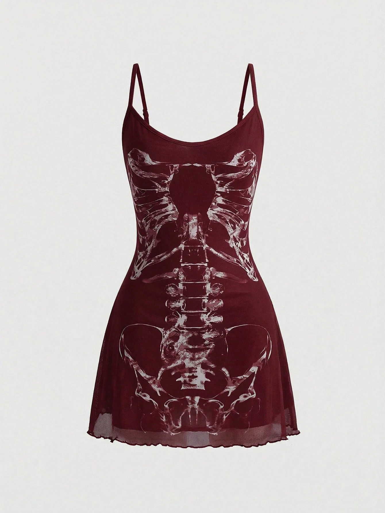Goth Vestido sin mangas con estampado de esqueleto de estilo gótico para mujer, verano