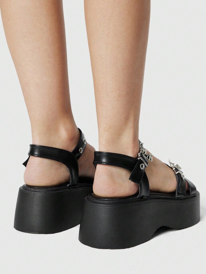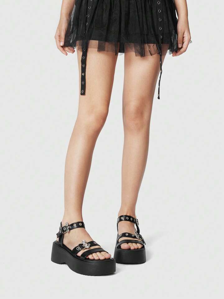 Goth Sandalias de plataforma con suela gruesa, estilo gótico, de verano, con abertura para los dedos, correa con hebilla, estilo punk rock y romano para la playa