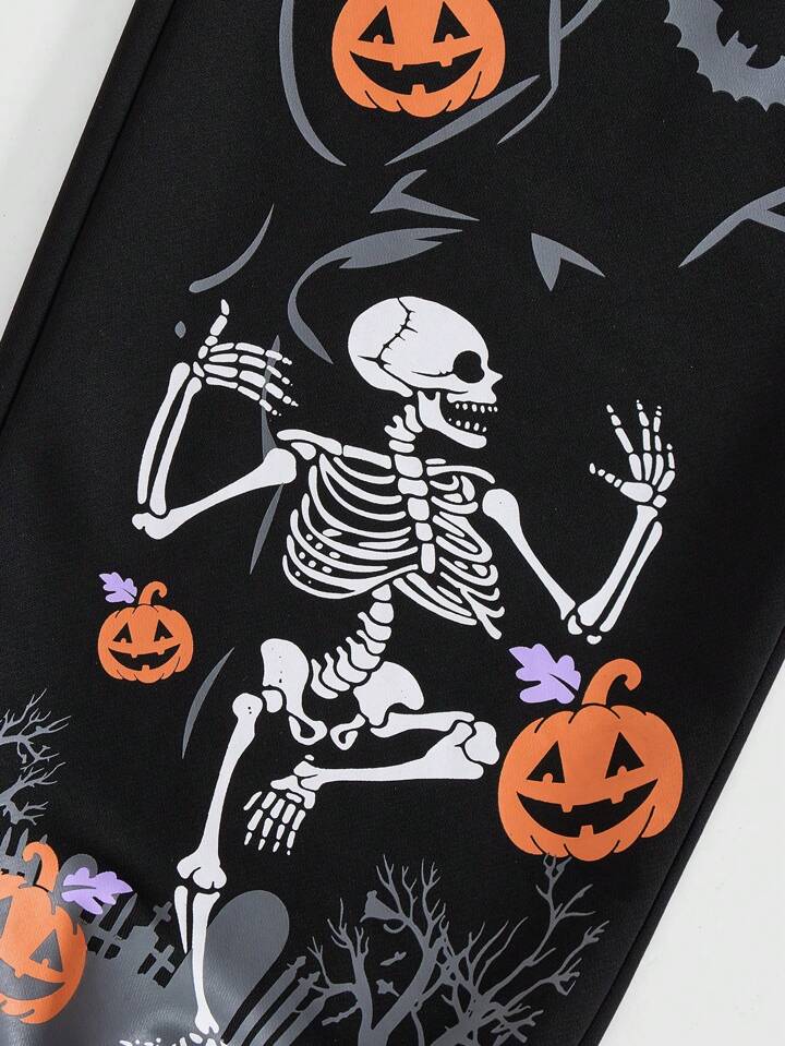 Pantalón de chándal con cordón estampado de calabaza, calavera y murciélago para mujer