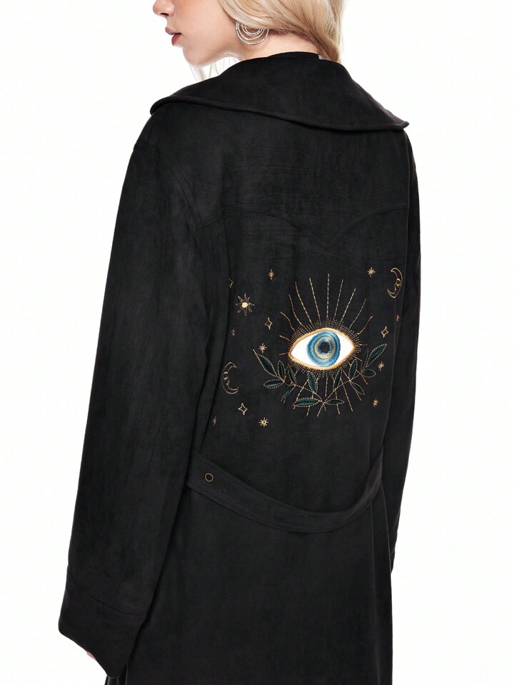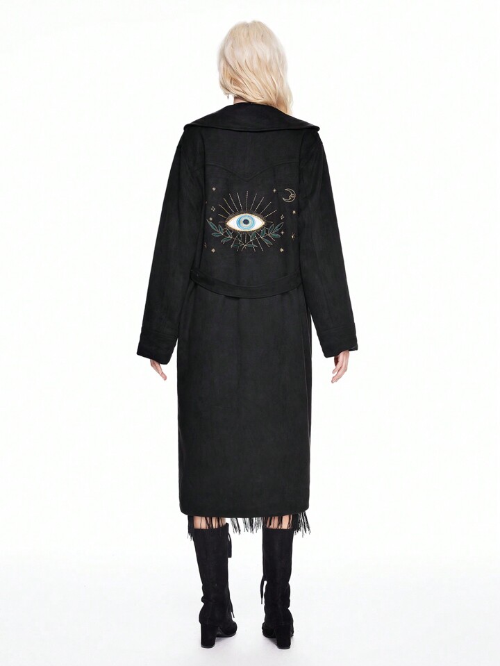 Abrigo estilo trench de terciopelo con bordado de ojo hippie para mujer