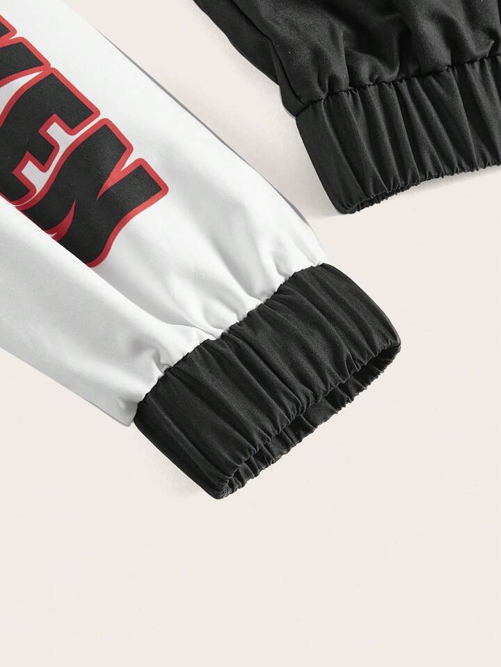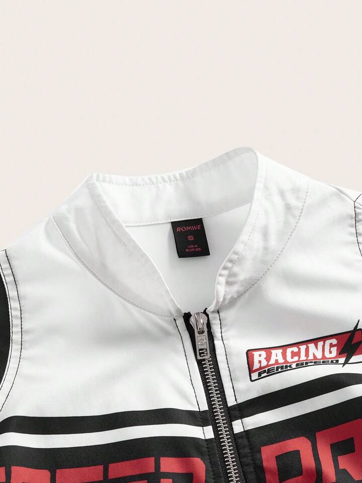 Conjunto de chaqueta con cremallera delantera con estampado de letras y números y falda plisada, para escuela
