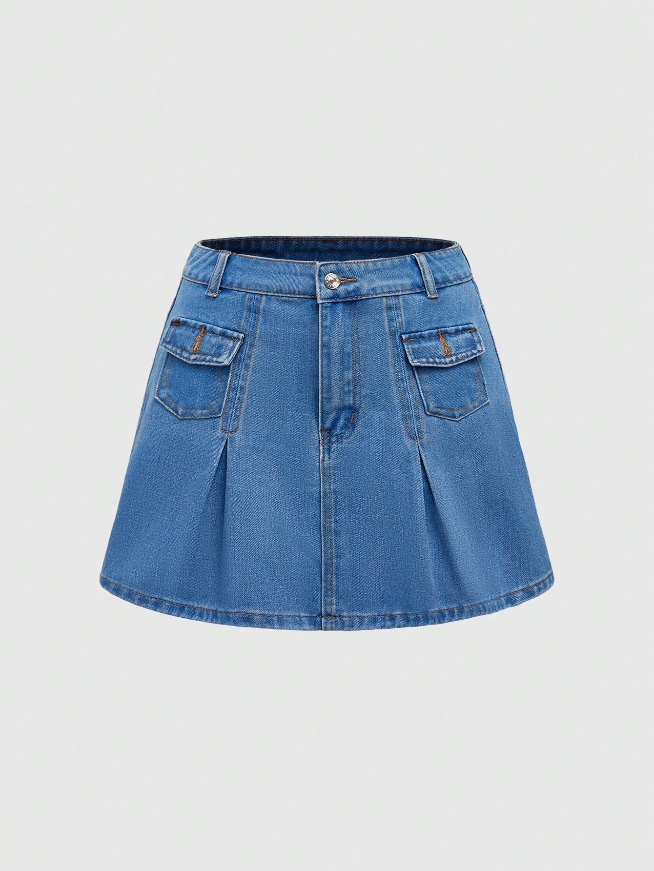Minifalda vaquera plisada casual con bolsillo para mujer