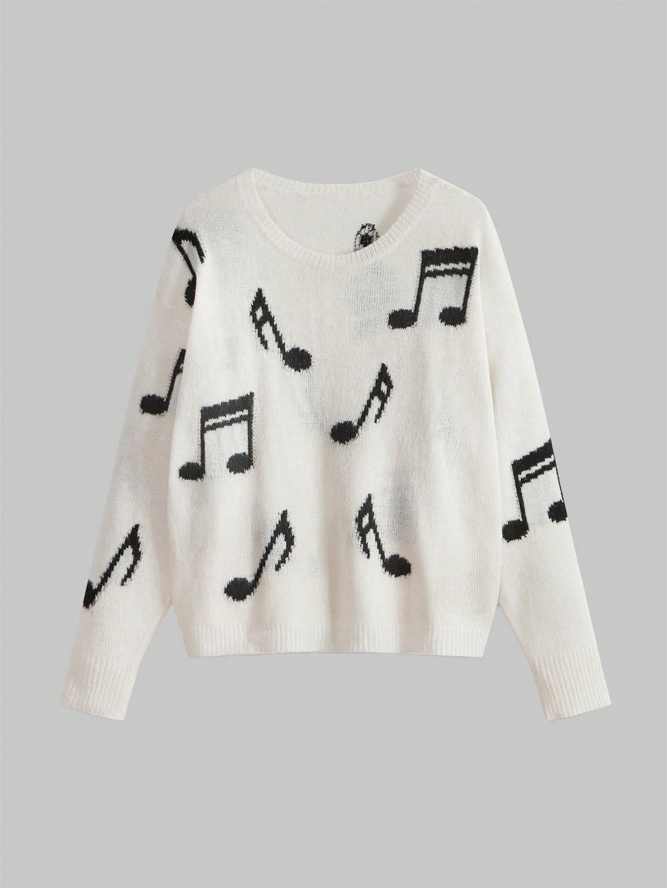 Suéter de mujer con patrón de punto jacquard con notas musicales en todo el diseño