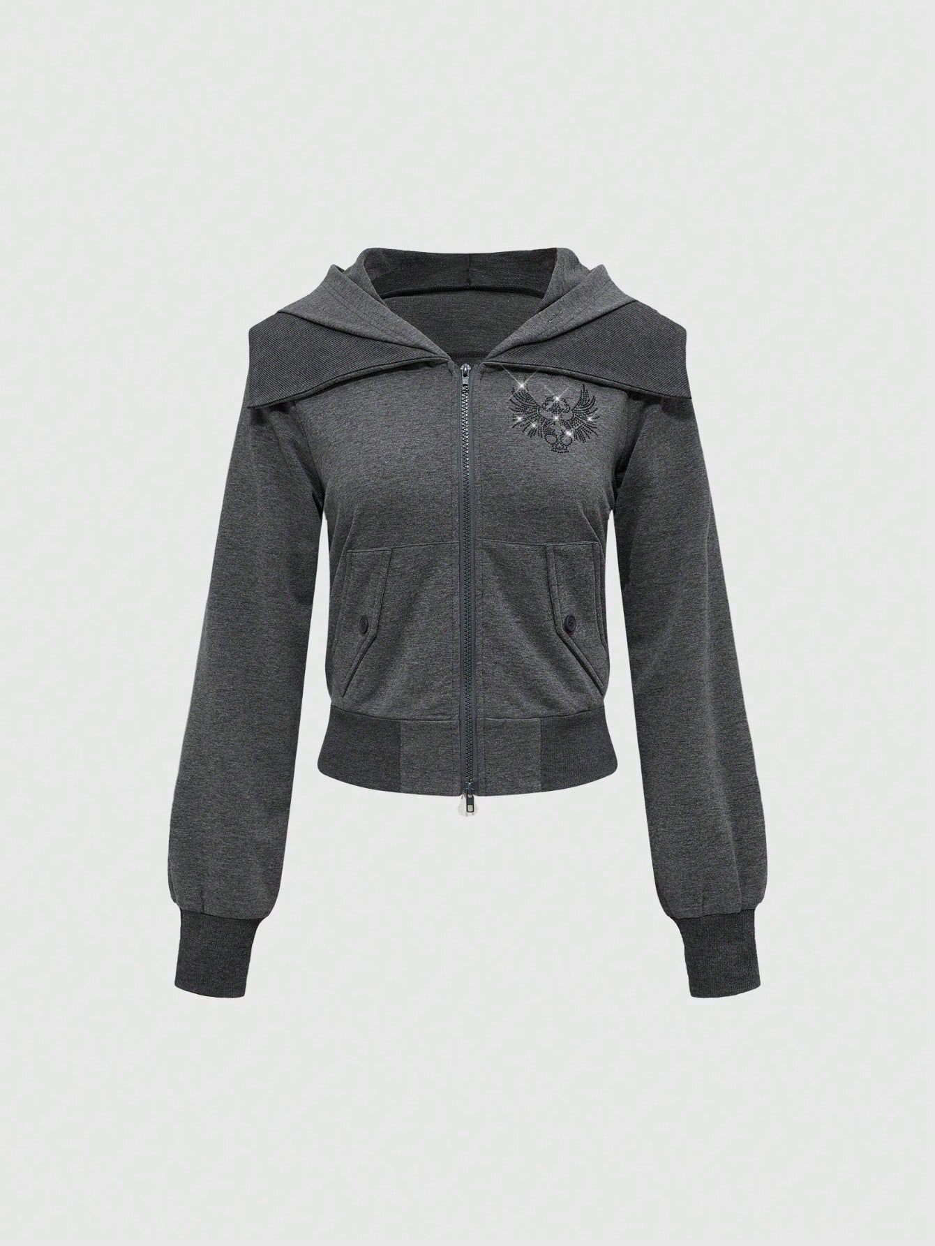 Sudadera con capucha para mujer con alas de esqueleto, estilo retro casual y Y2K, decorada con cristales y con diseño fairycore
