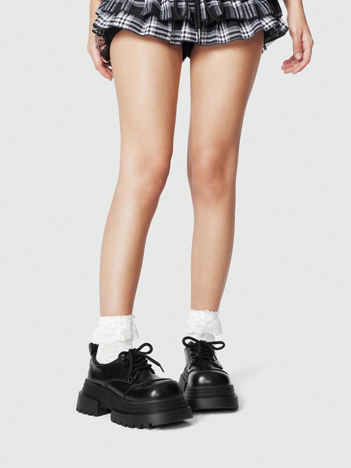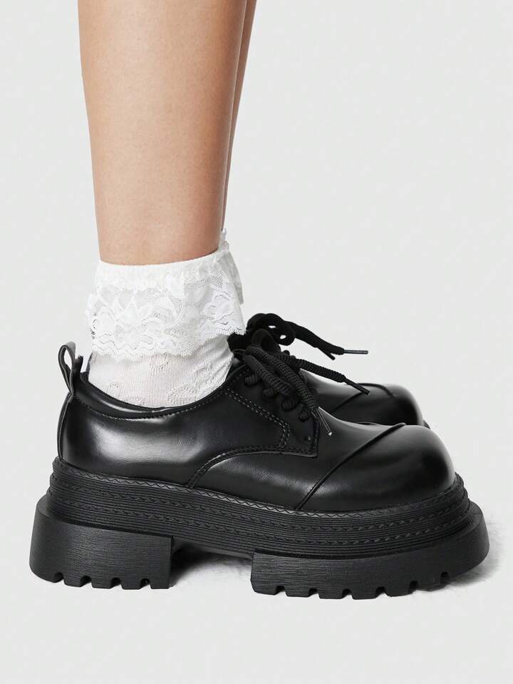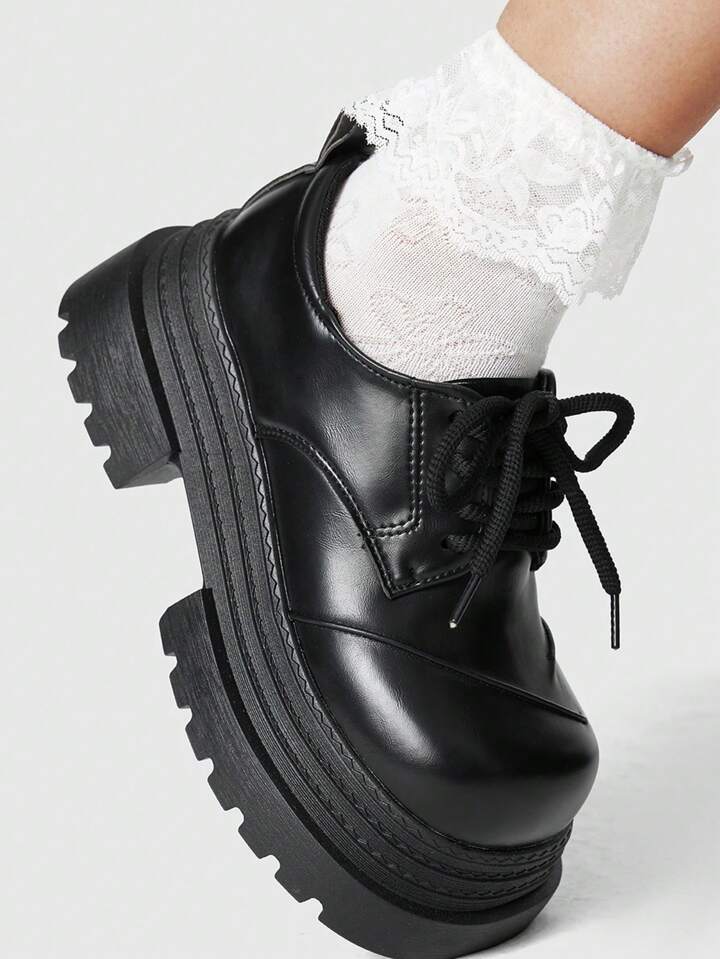Goth Zapatos de mujer estilo Mary Jane retro gótico con cordones, de punta cerrada, plataforma y cuña de tacón estilo punk rock