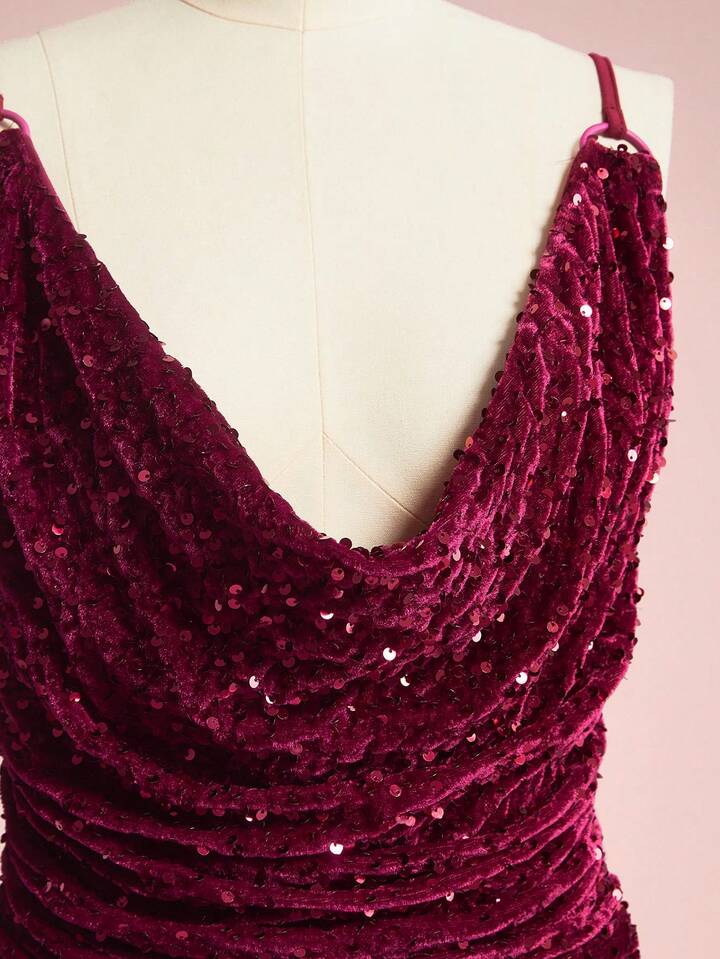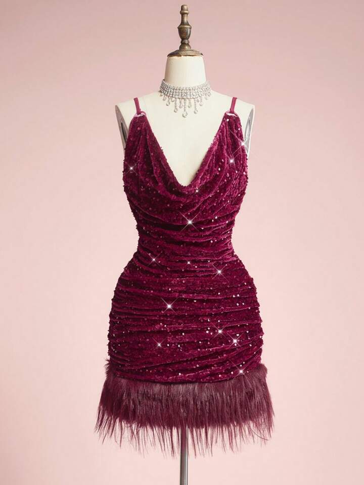 Vestido mini con volantes, parches de lentejuelas y dobladillo de piel sintética para mujer