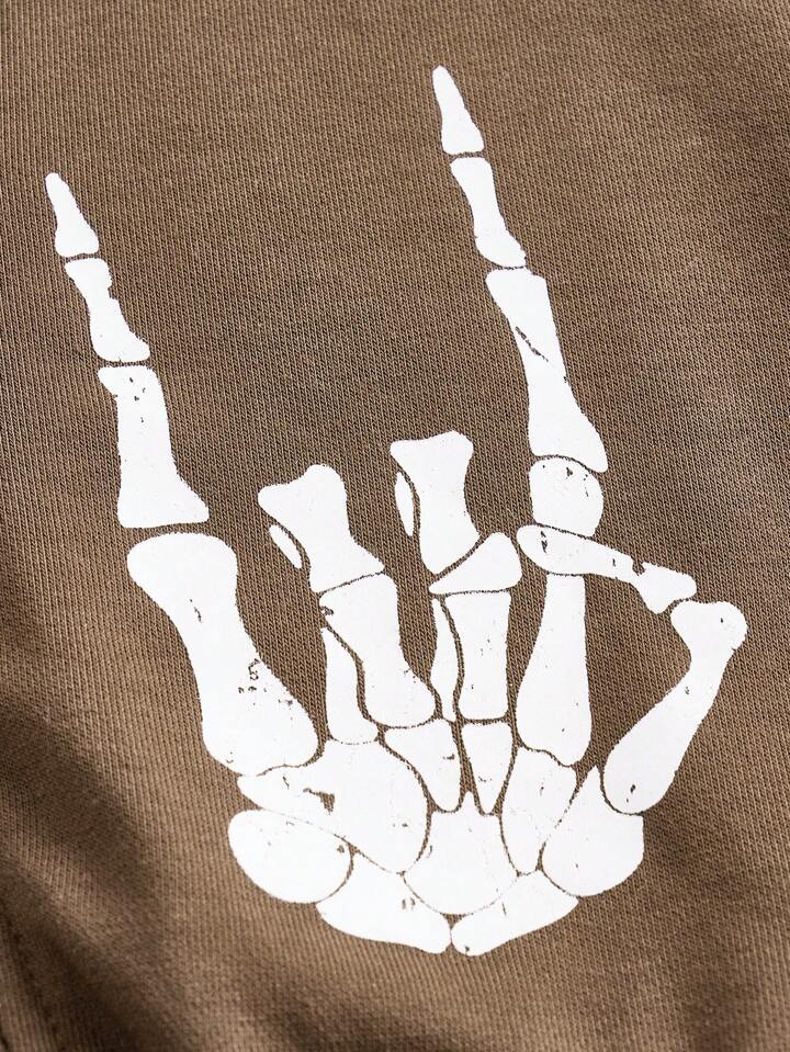 Sudadera Con Capucha Impresa Con La Mano De Calavera Para Mujer Con Cierre De Cremallera Frontal