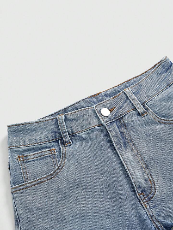 Shorts vaqueros de verano para mujer con bajo de dobladillo, bordado de dibujos animados de fresa