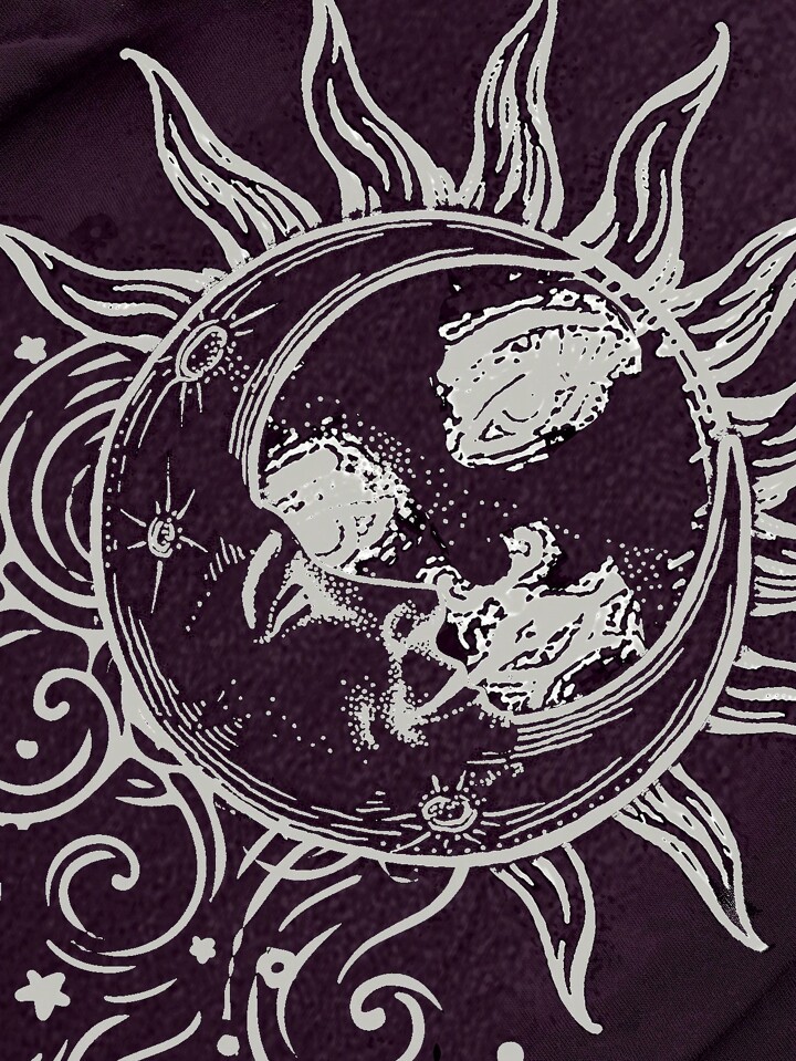 Parte superior sin mangas de verano para mujer con estampado de luna y sol, diseño de recogido en el frente, estilo hippie