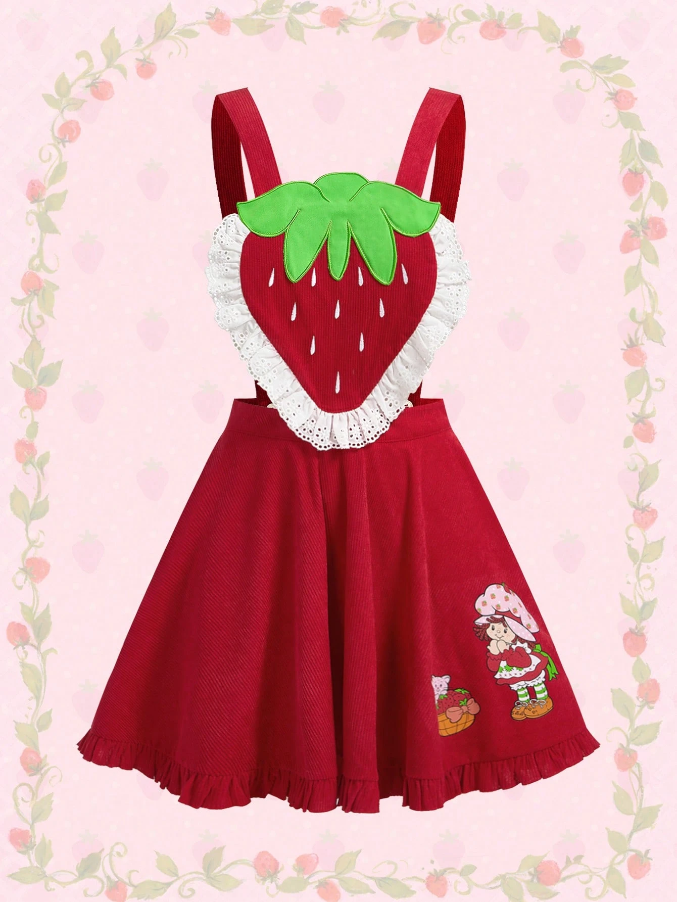 Vestido de verano para mujer con volantes en el bajo, tirantes y bordado de fresa transparente
