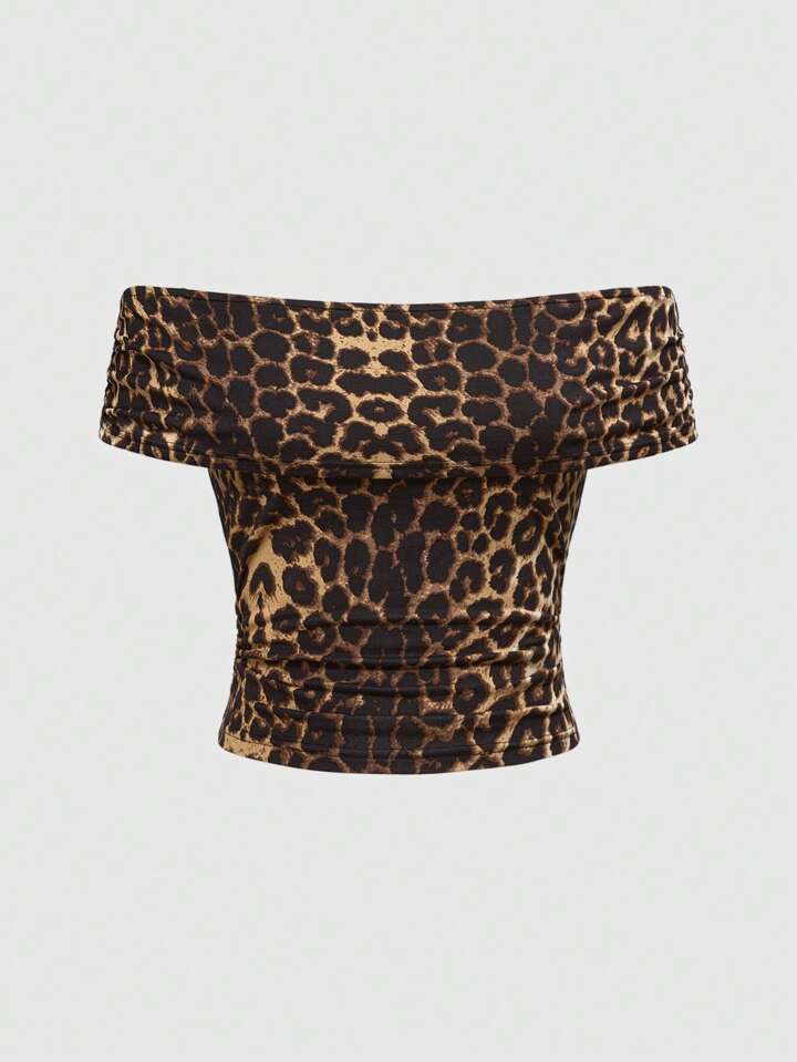 Blusa mujer estilo vintage y sexy con estampado de leopardo y hombros descubiertos, estilo Y2K J-Fashion