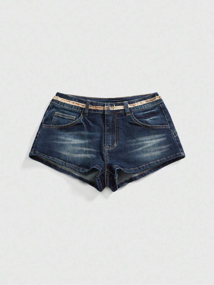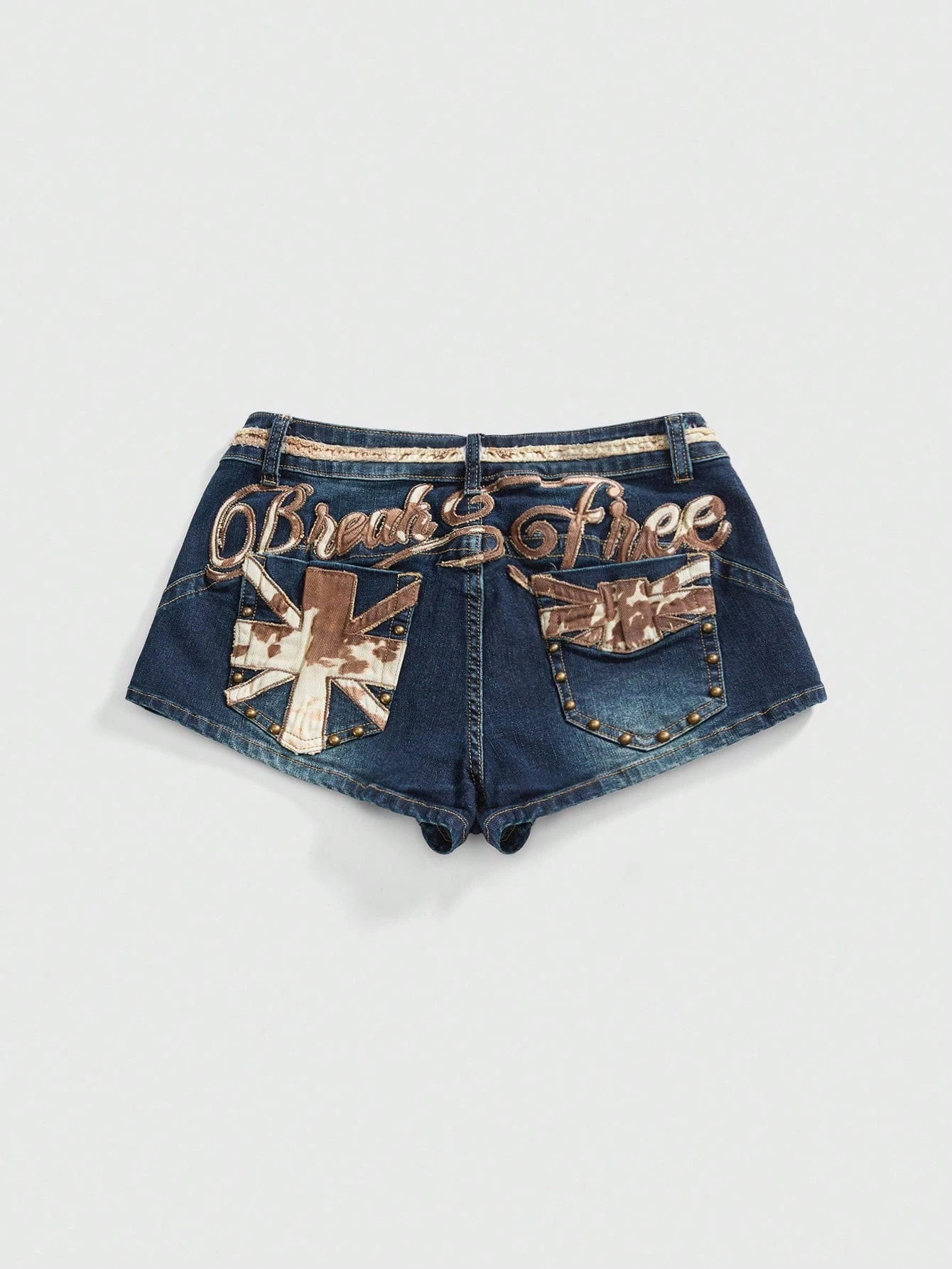 Pantalones cortos de mezclilla con bordado de cuentas, estilo de vacaciones hippie Y2K, estampado de vaca para mujer
