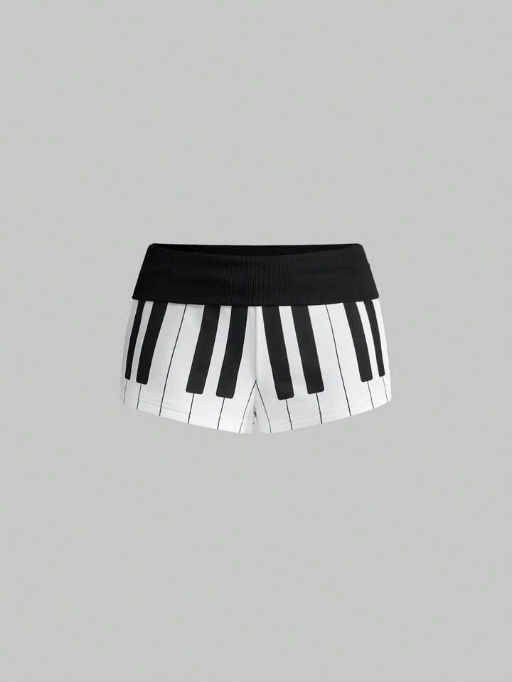 Pantalones cortos ajustados y súper cortos para mujer con estampado de teclado de piano, cintura ultrabaja y plegable, estilo Y2K sexy