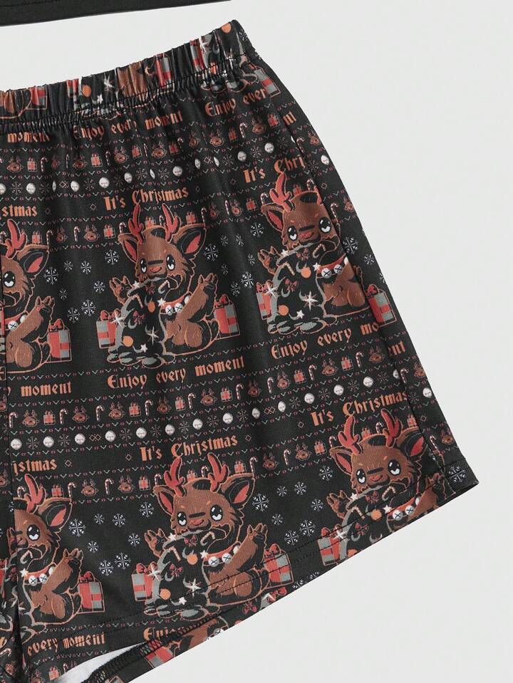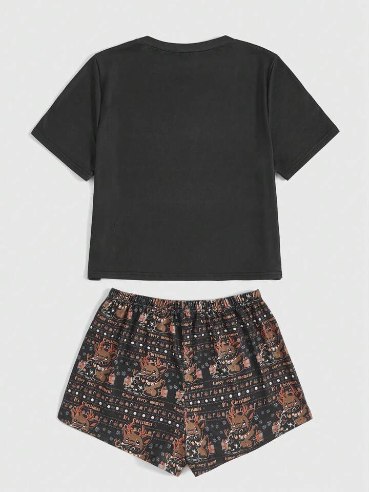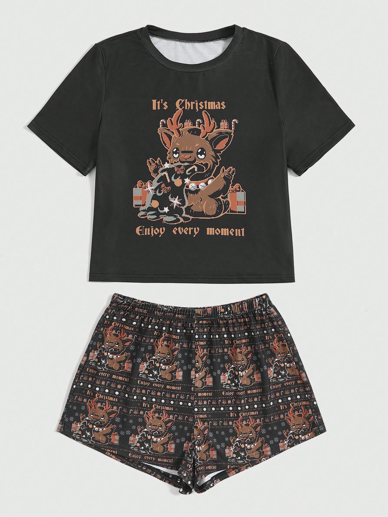 XMorfina Conjunto de pijama shorts con camiseta con estampado de dibujos animados y slogan