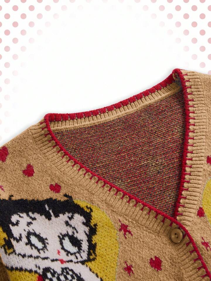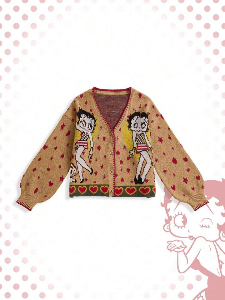Betty Boop | ROMWE Cárdigan con estampado de figura de dibujos animados, corazón y estrella para mujer, estilo Y2K