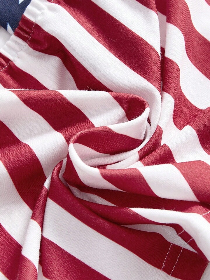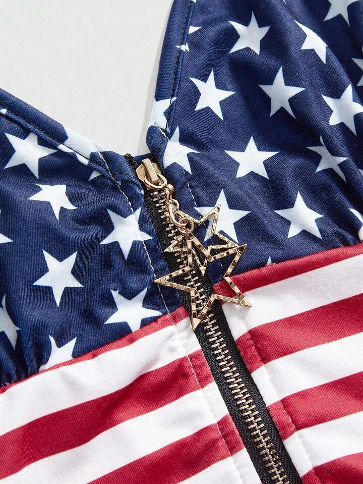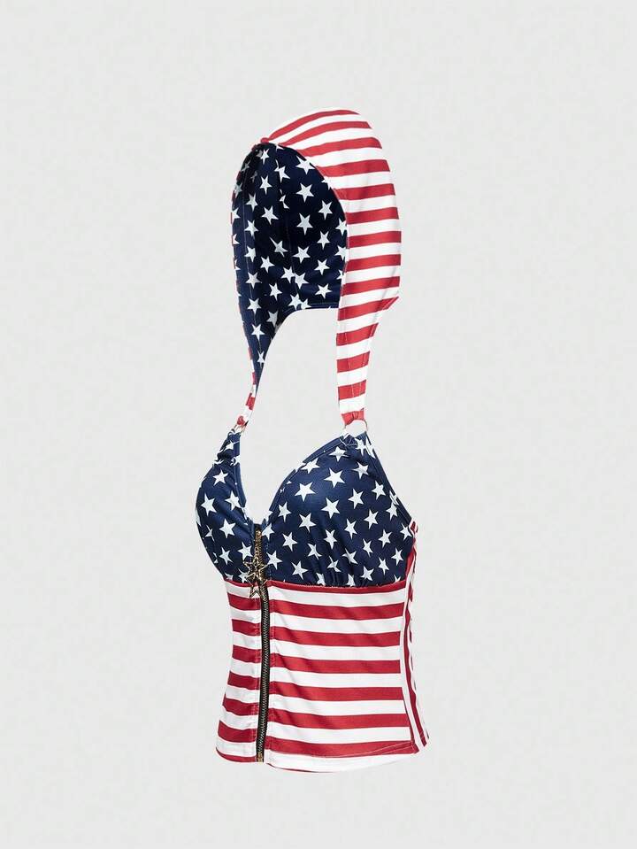 Top corto Y2K con estampado de rayas grises y bandera americana, ajustado