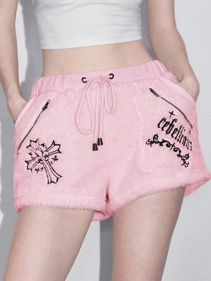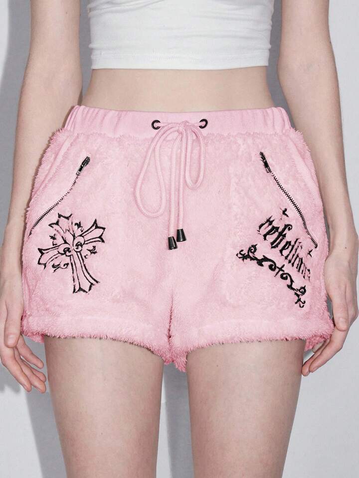 Goth Pantalones cortos de mujer con bordado de cruz gótica estilo Y2K, para Halloween