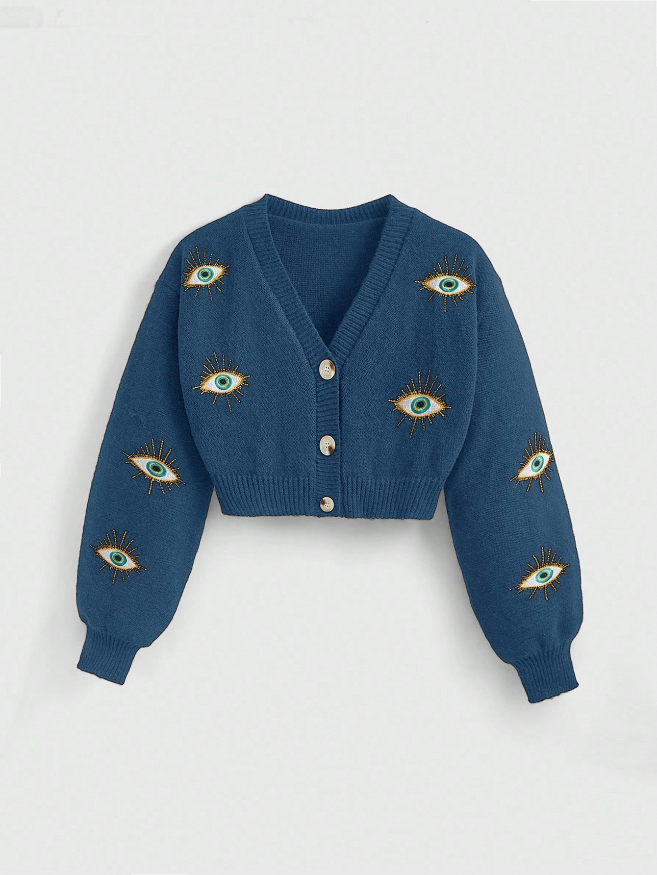 Cárdigan de mujer talla grande con estilo hippie Y2K y parte superior tejida con ojo bordado