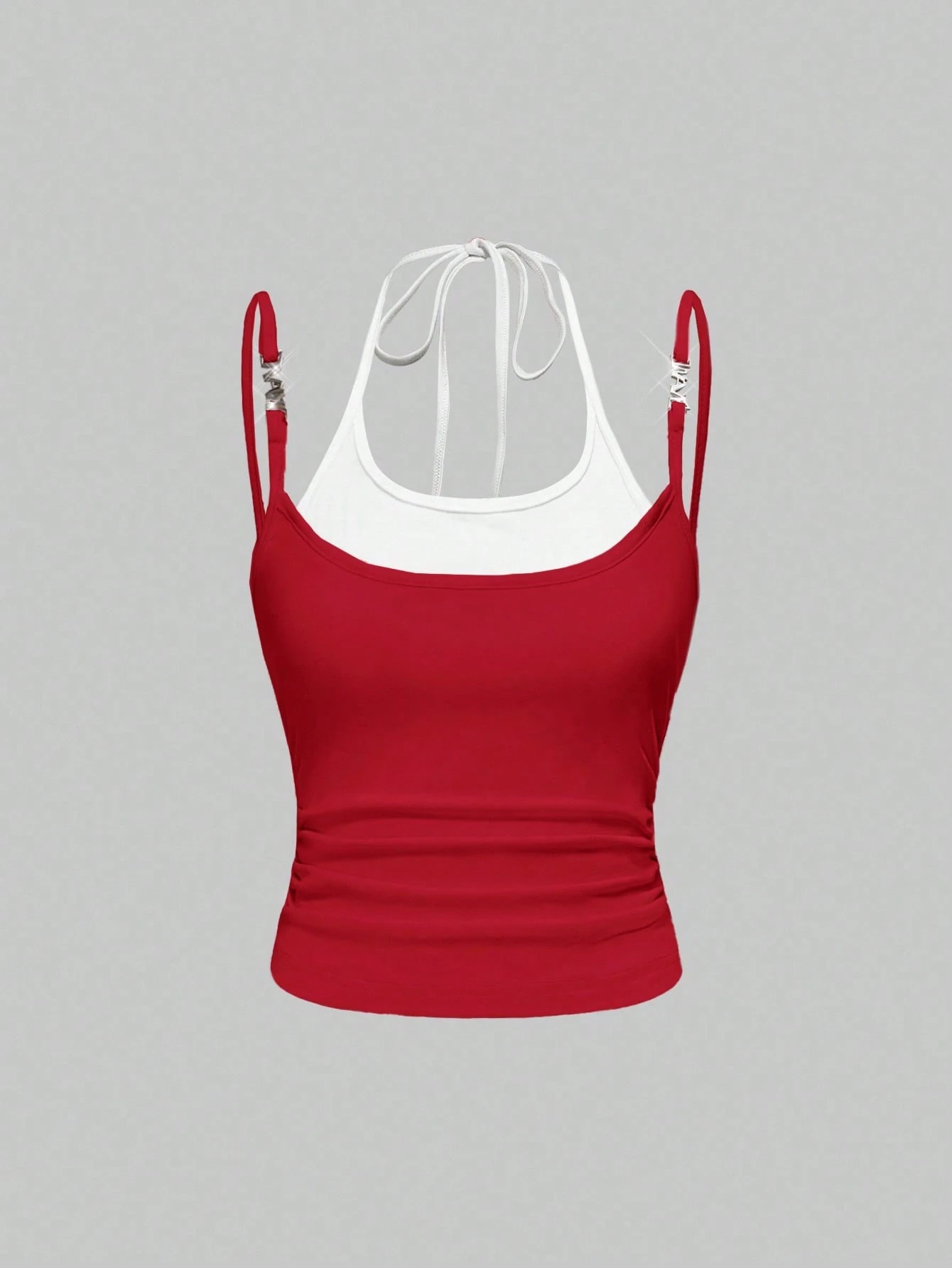 Top de tirantes finos 2 en 1 con colgante metálico estilo Y2K