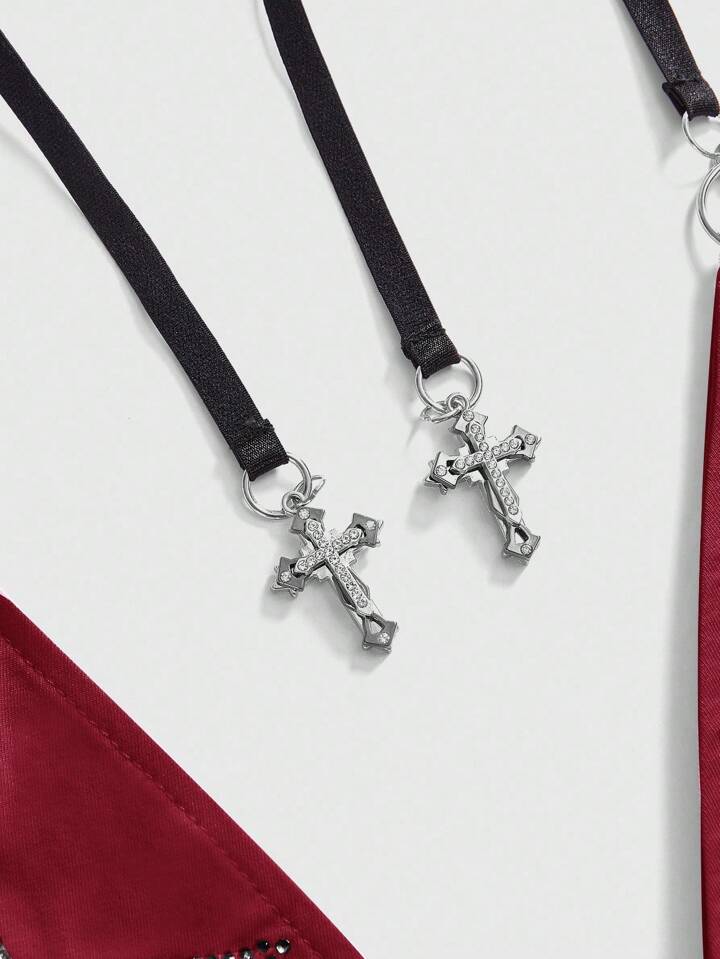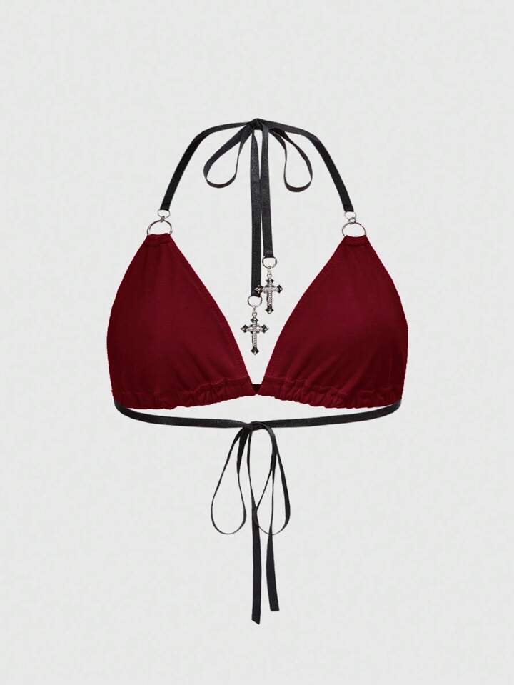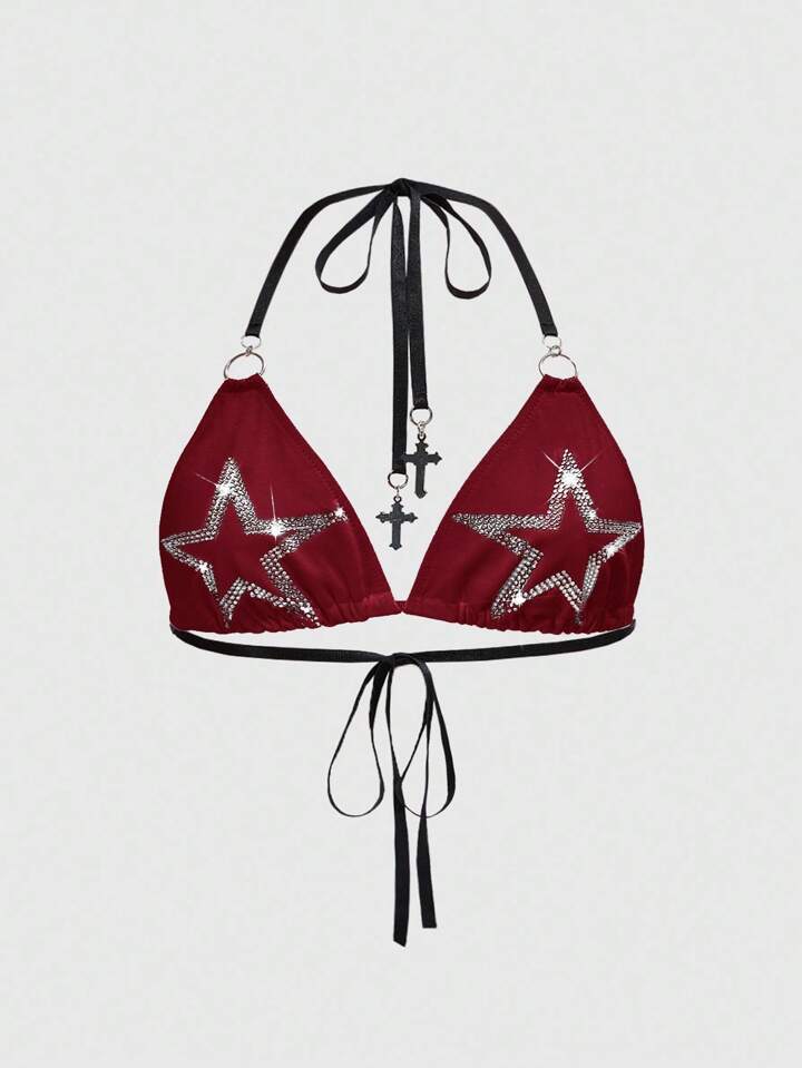 Top de bikini con pedrería, estilo grunge rock de festival de música Y2K, color rosa claro