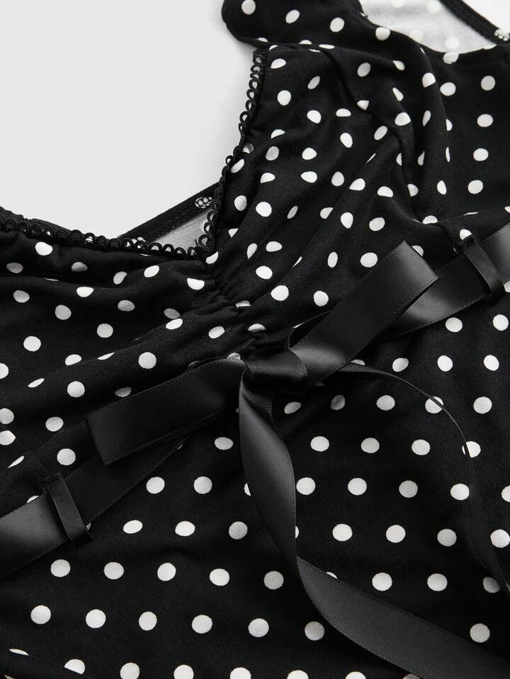 Camiseta de mujer con diseño de lunares y lazo estilo Y2K