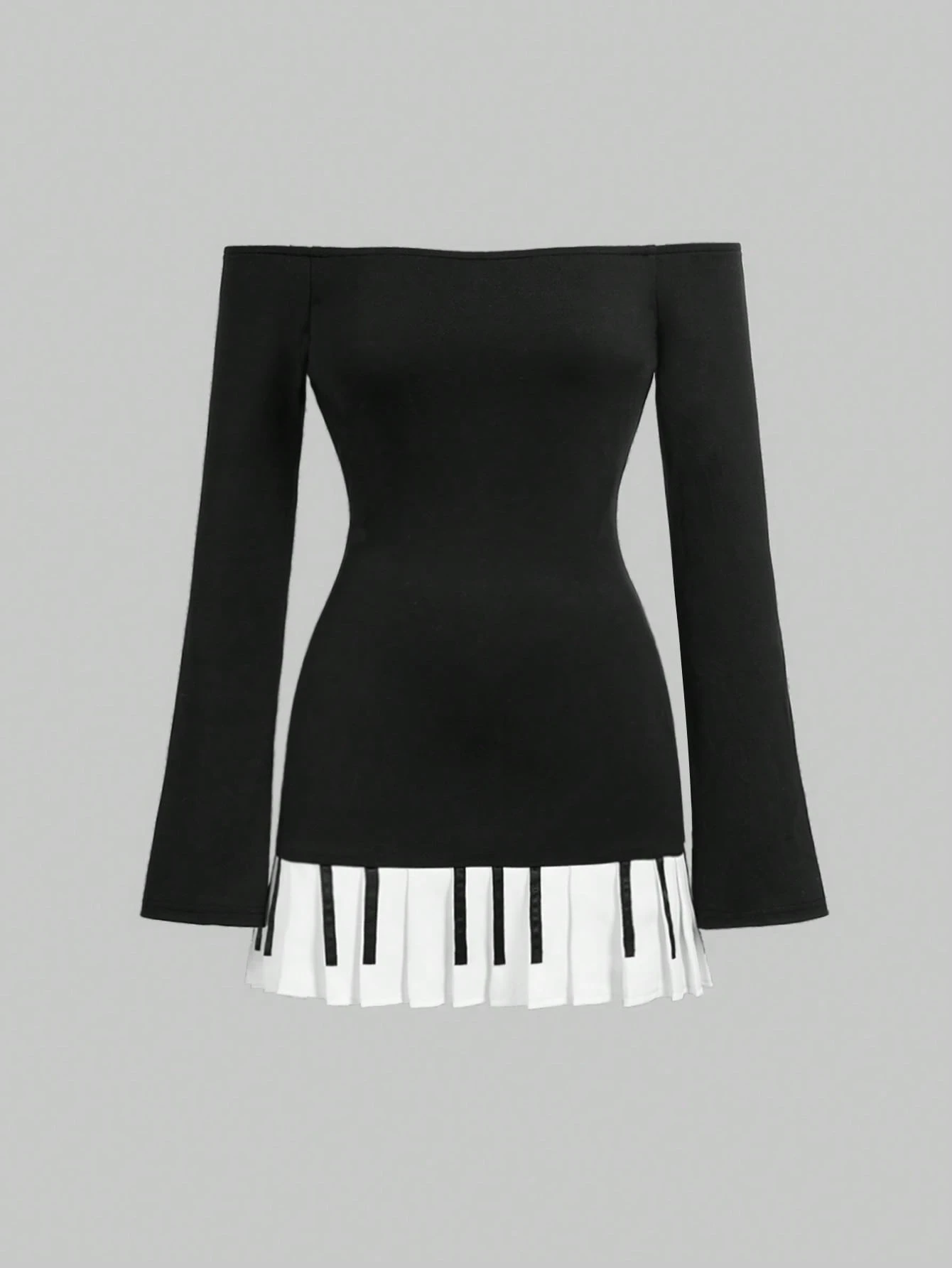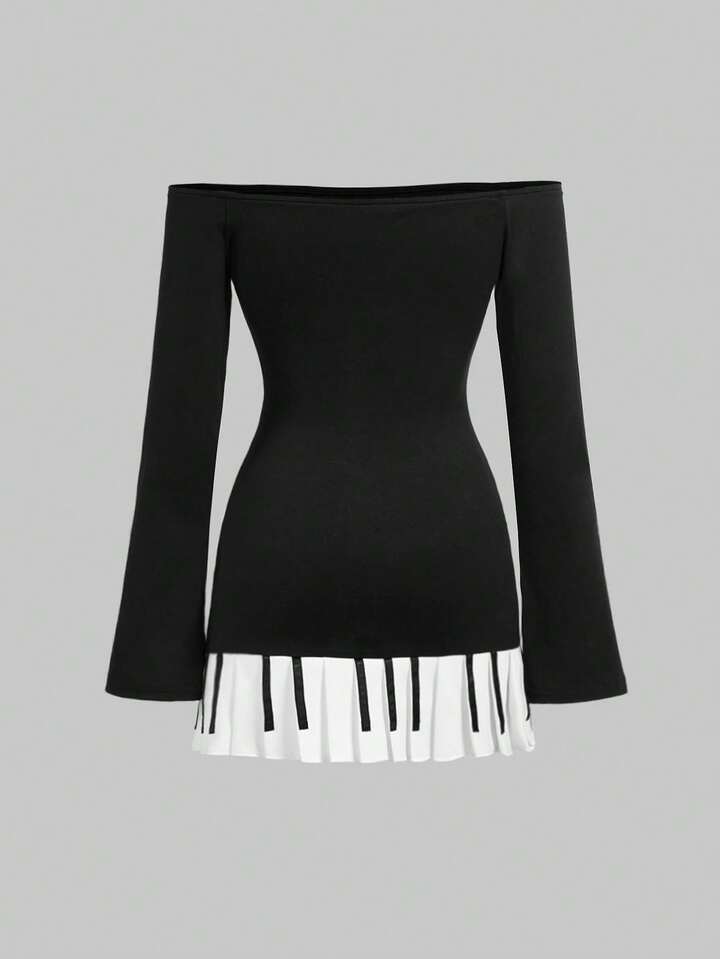 Vestido mini ajustado con hombros descubiertos, mangas acampanadas y bajo de piano para mujeres, estilo Y2K sexy