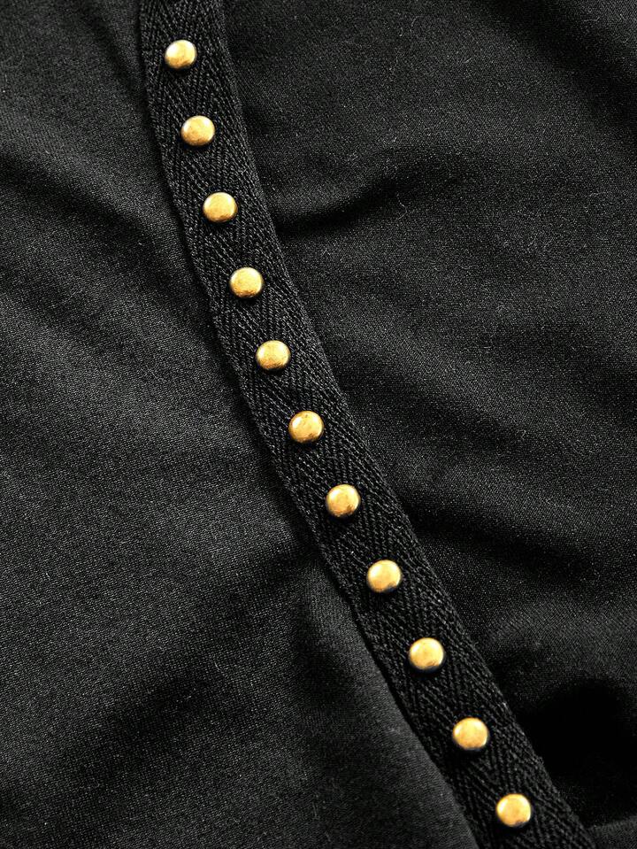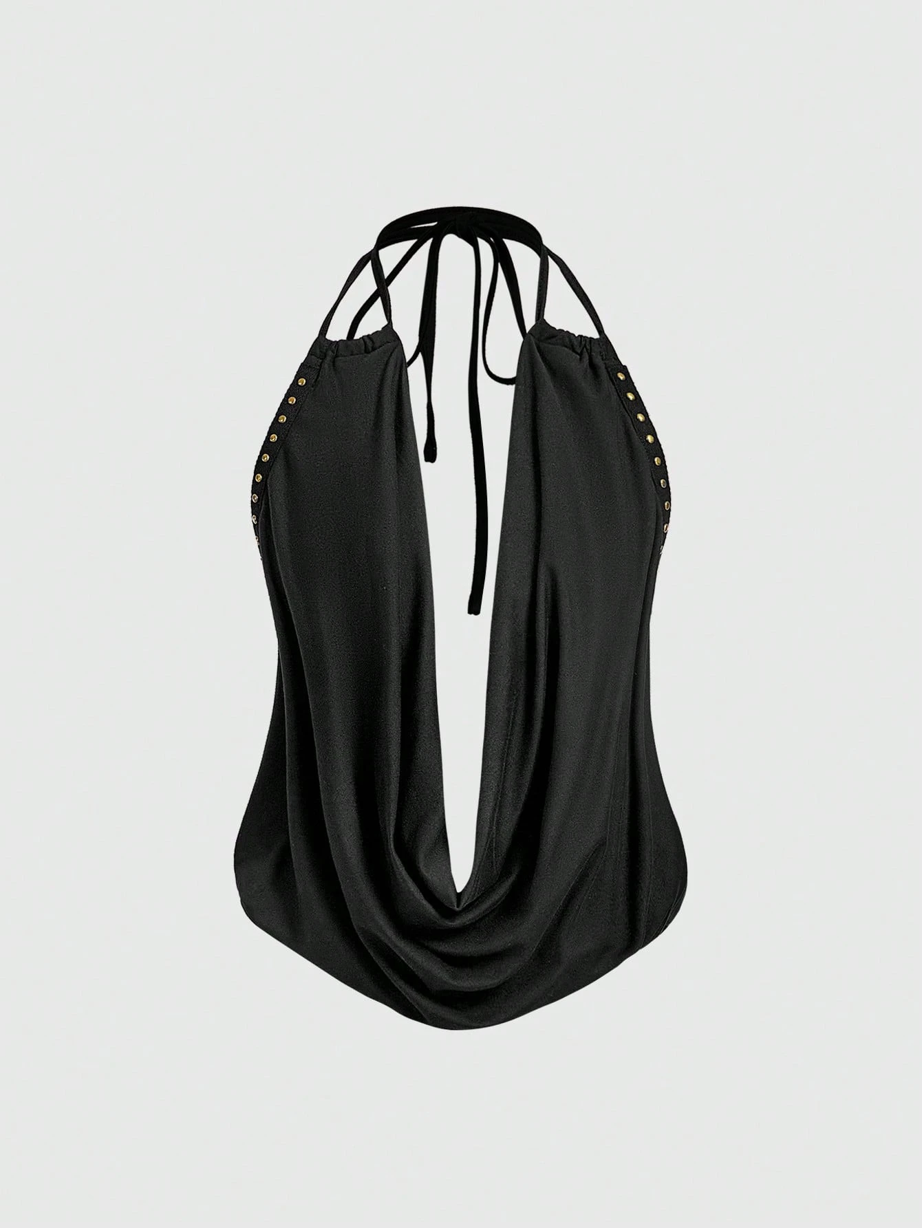 Camiseta sin espalda con drapeado y remaches sexy estilo Y2K