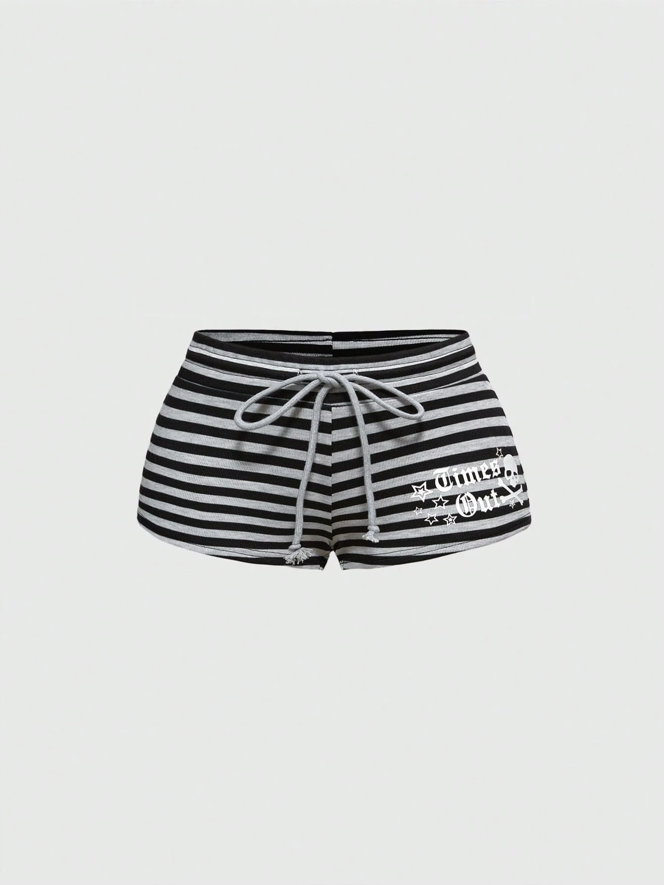Pantalones cortos de mujer de talle bajo con estampado gráfico punk de estilo Y2K, decorados con rayas, estrellas y letras en inglés