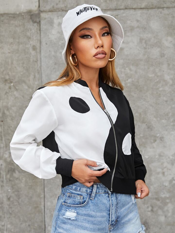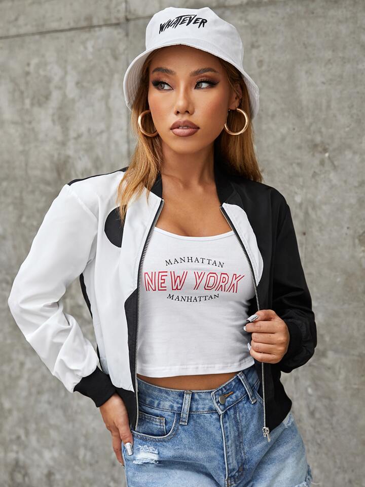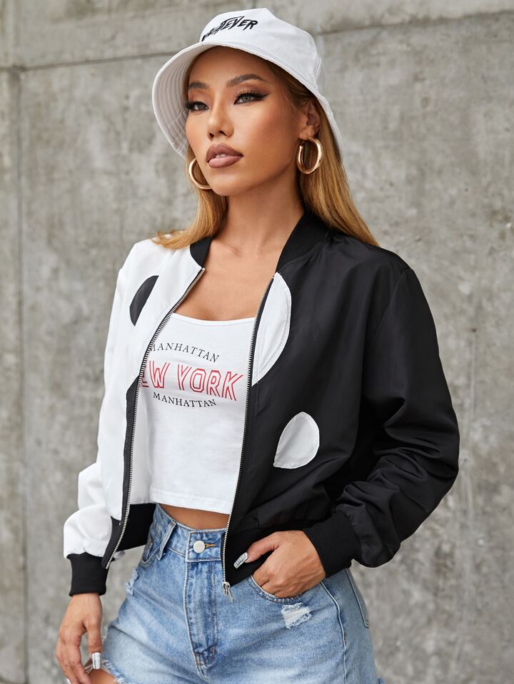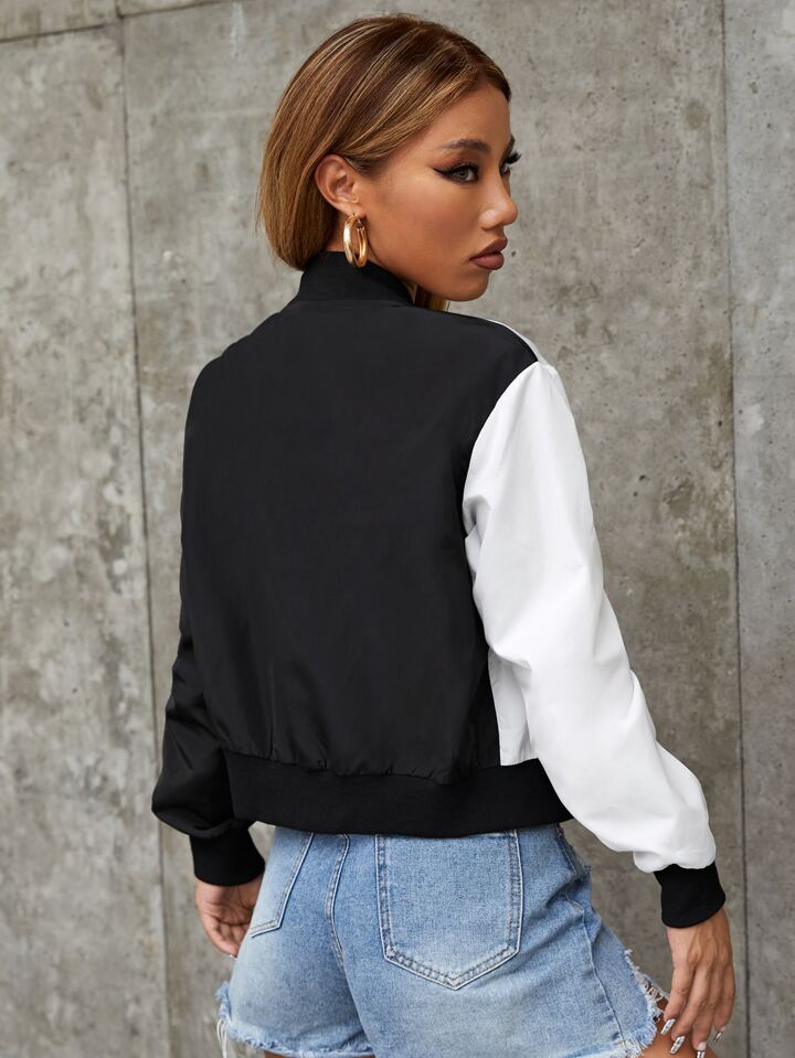 Cazadora tipo bomber Yin & Yang de color combinado cuello béisbol