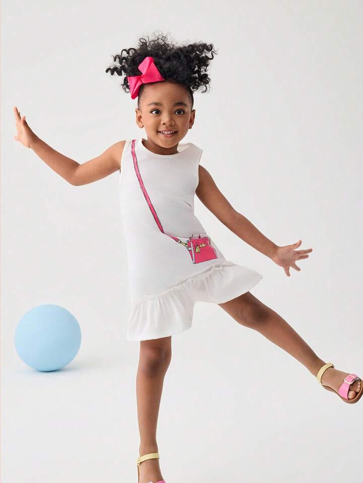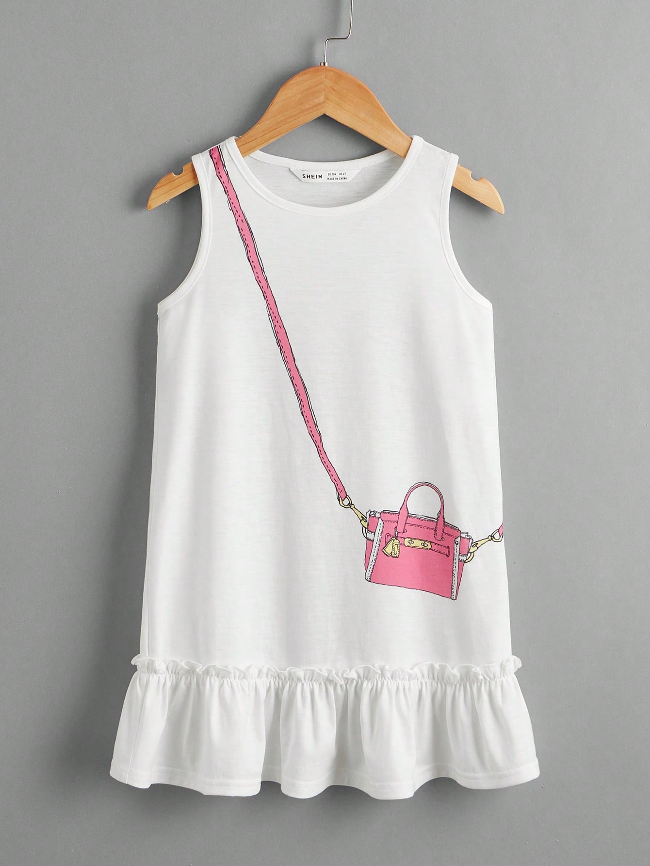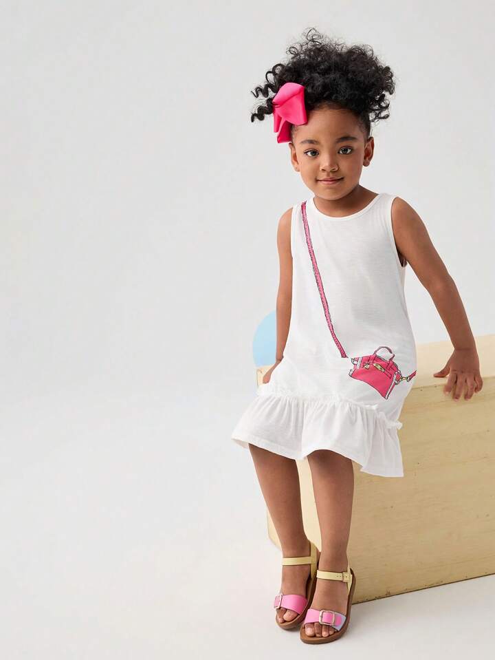 Vestido Con Estampado De Bolsa Y Dobladillo Con Volantes Para Chica Joven