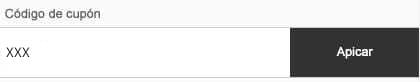 El código de cupón puede ser utilizado por introducirlo en el blanco de la sección de cupón.