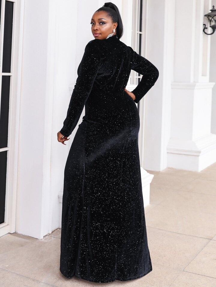 seomiscky Vestido brillante de terciopelo de muslo con abertura con cremallera
