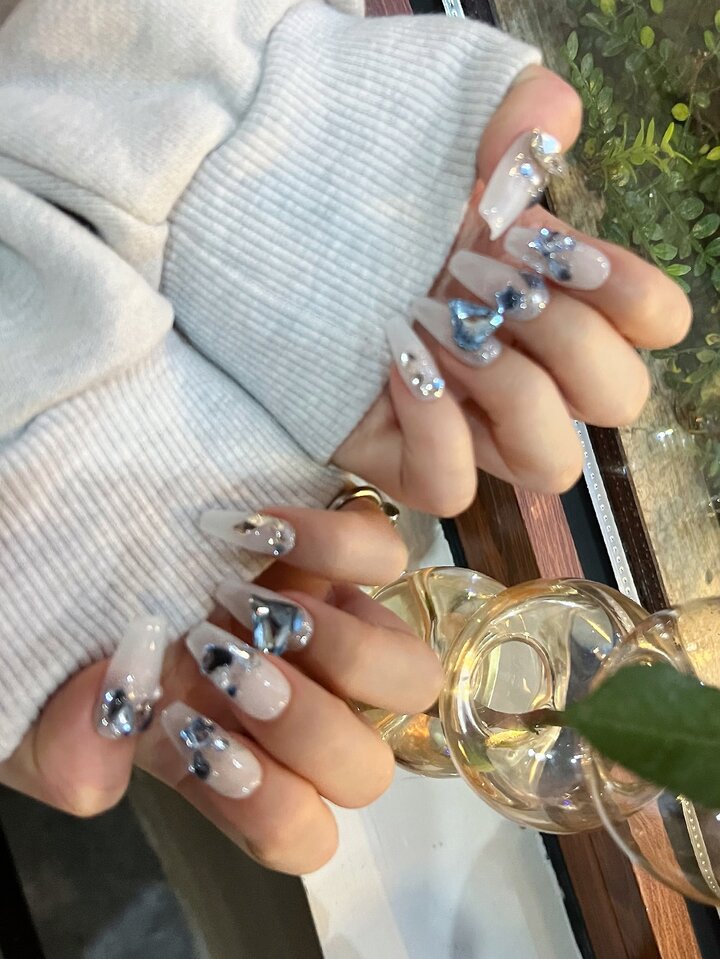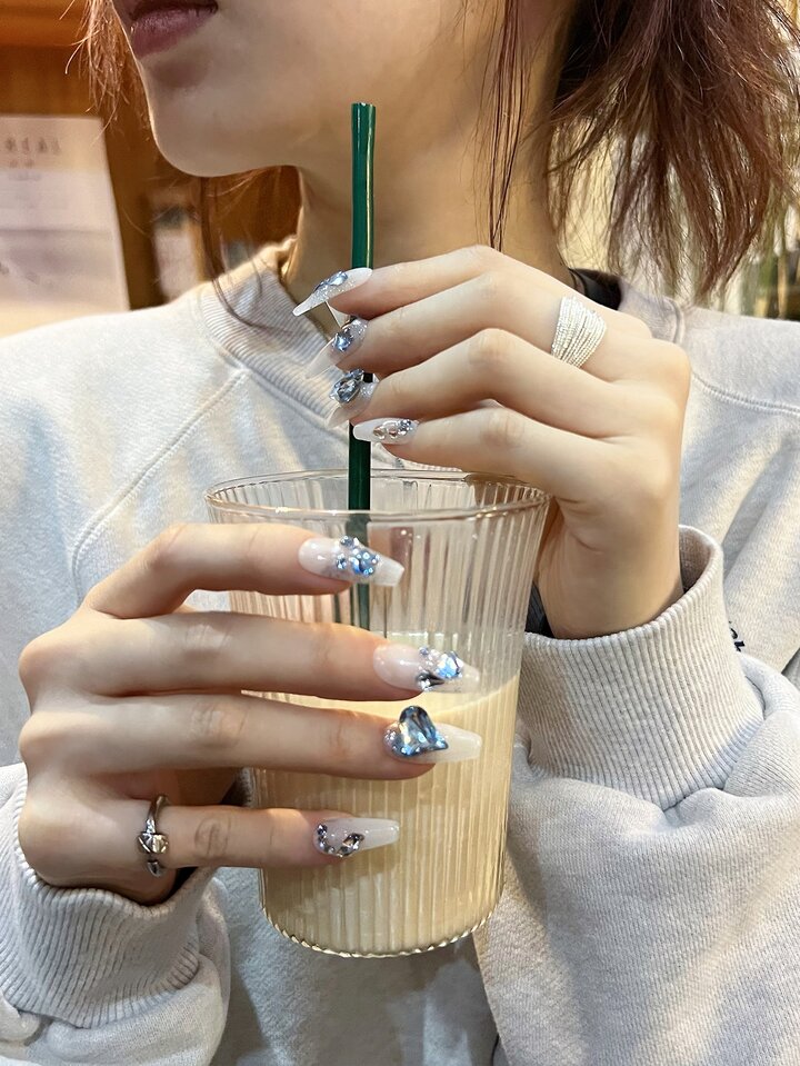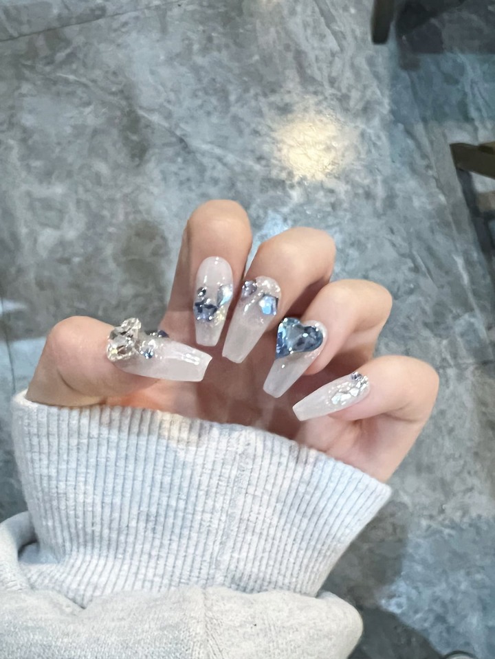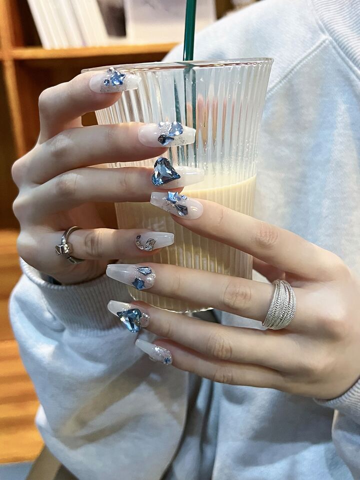 10 pièces long Cercueil 3D À Détail Cœur Faux Ongles & 1 feuille Ruban