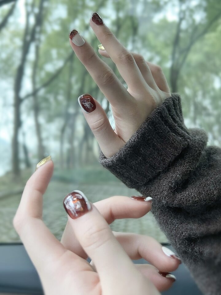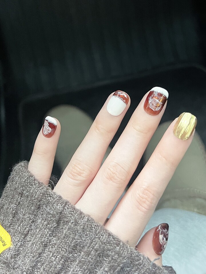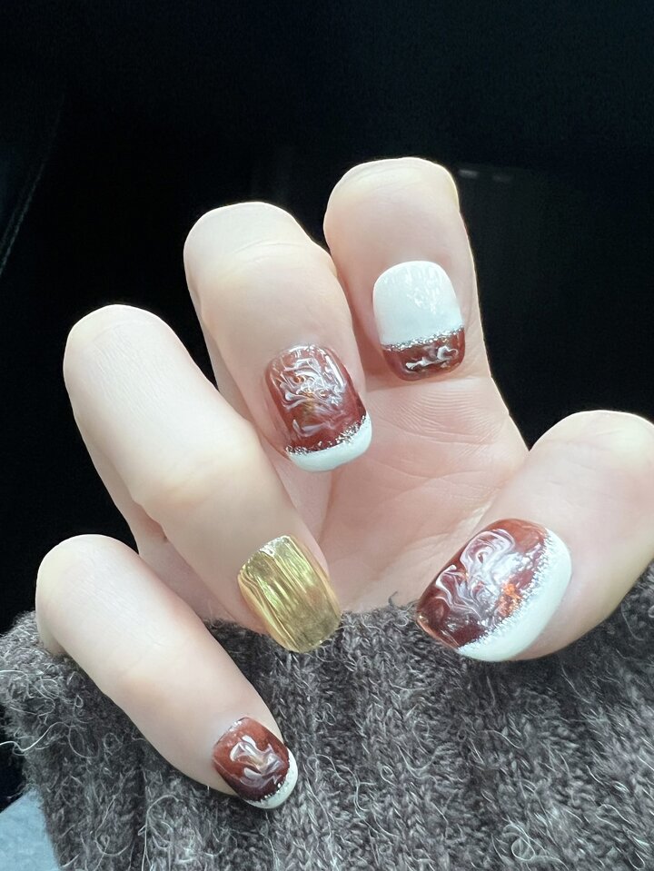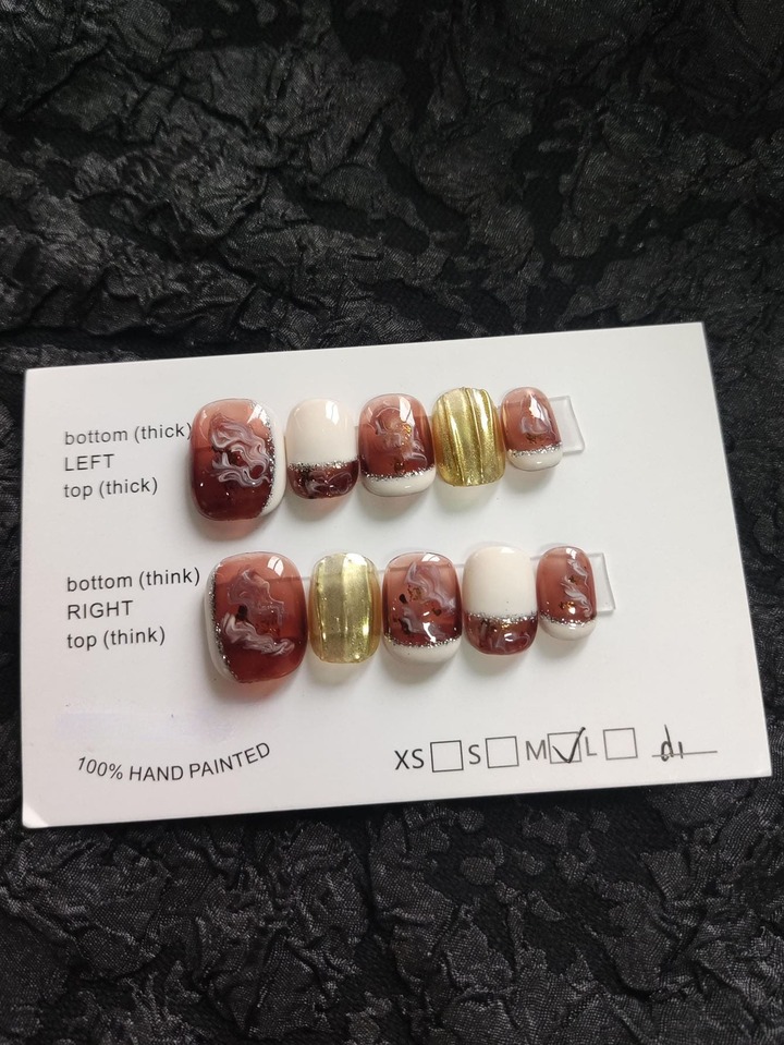 10 pièces Faux ongles court carré à imprimé marbré & 1 feuille ruban