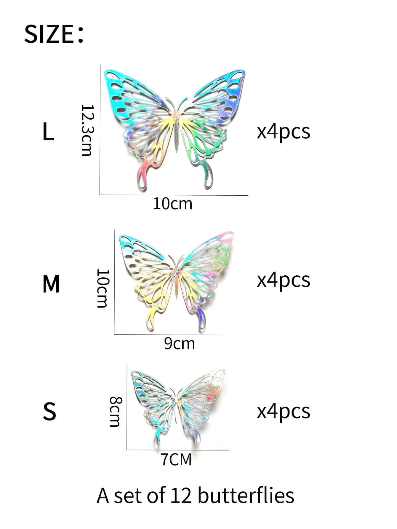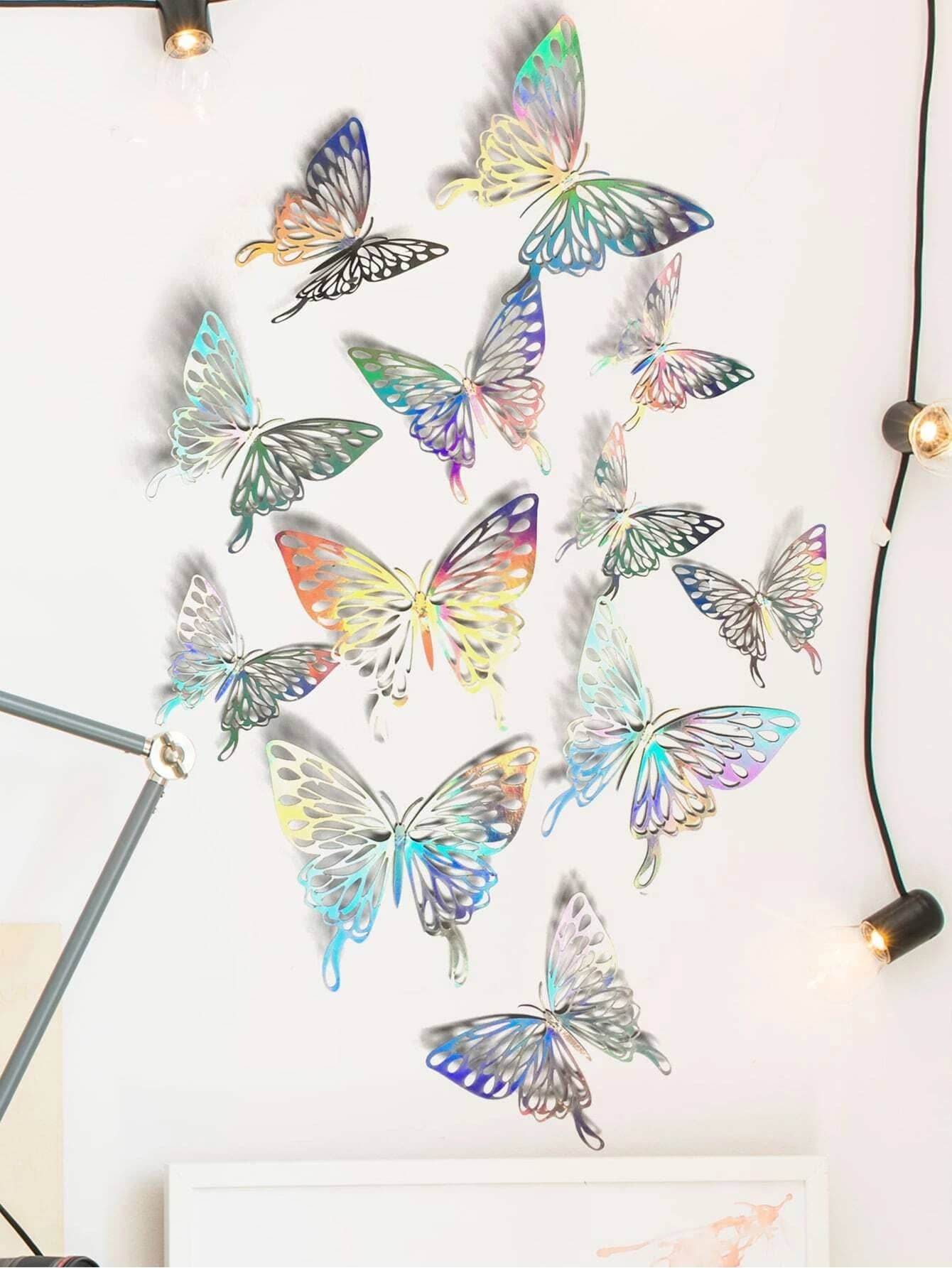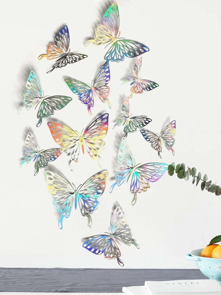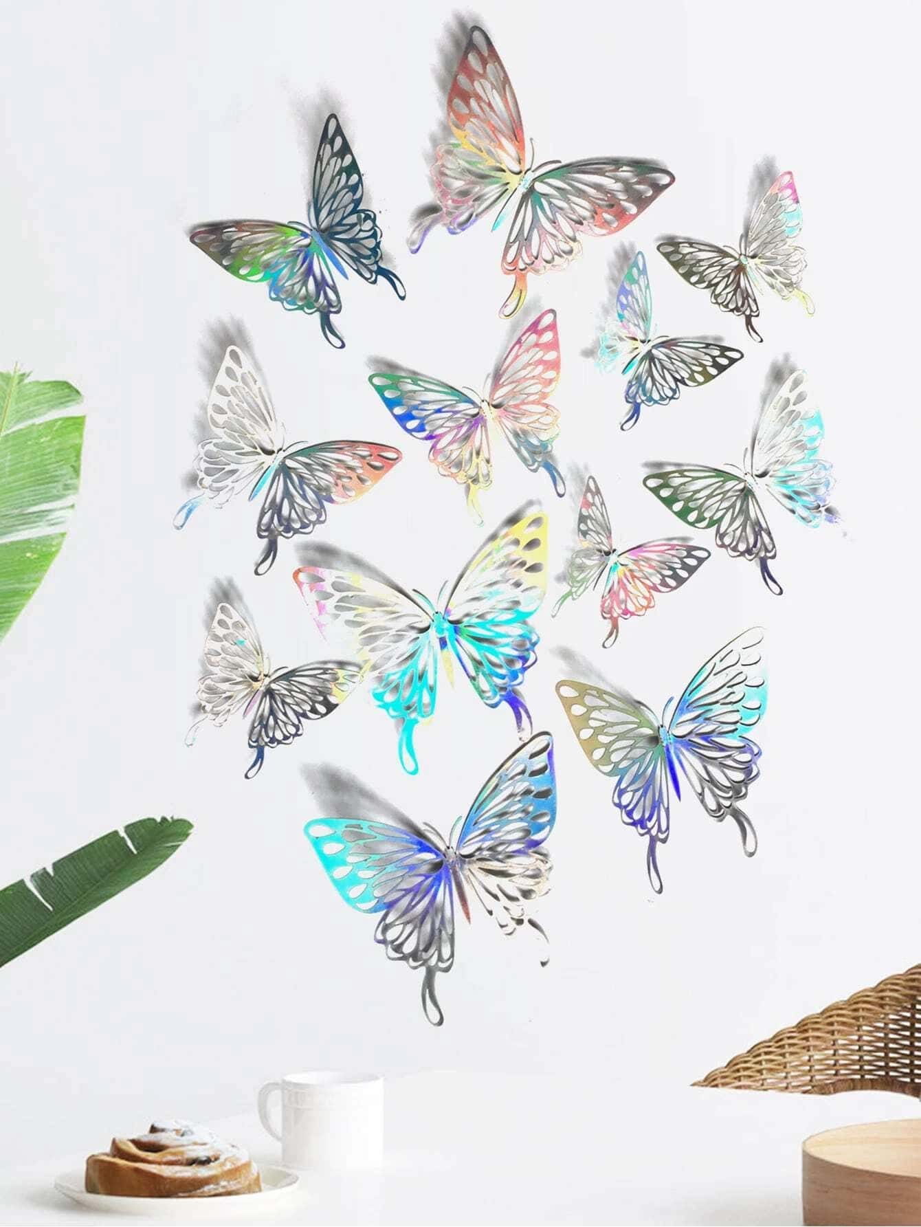 12 pièces Autocollant mural holographique papillon