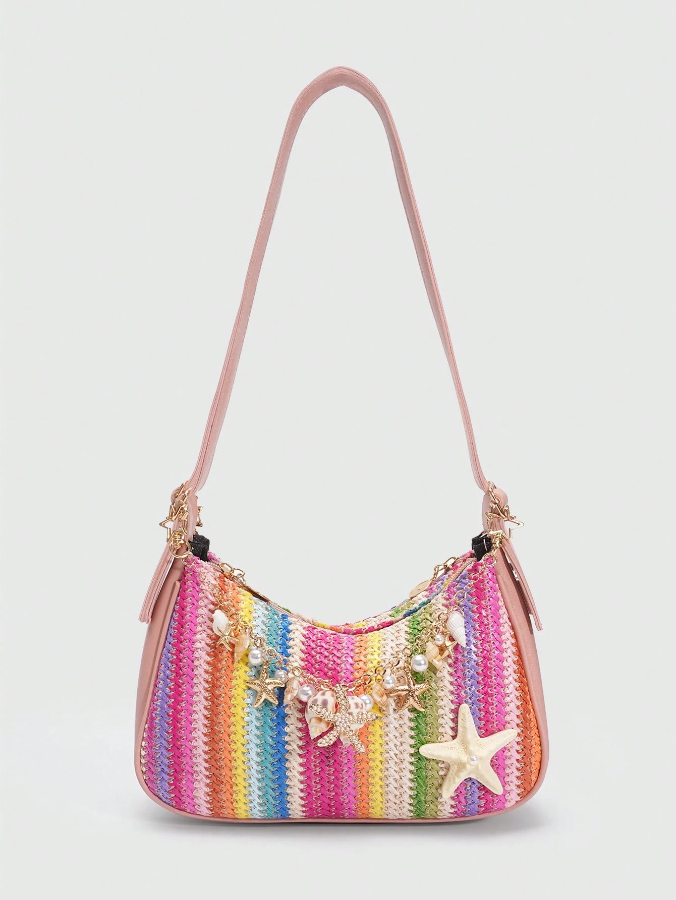 Fairycore 1 pièce Sac de paille de style resort avec décoration d'étoile de mer et coquillage coloré, sac de plage tropical d'île, convient pour la tenue de voyage et de vacances au printemps et en été