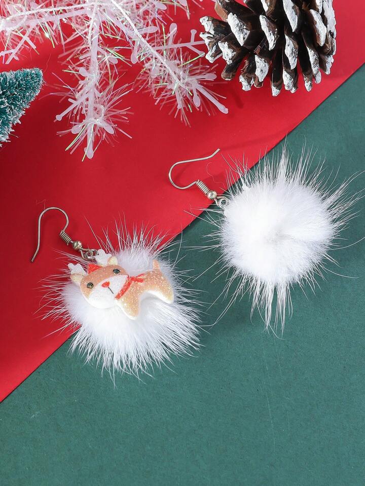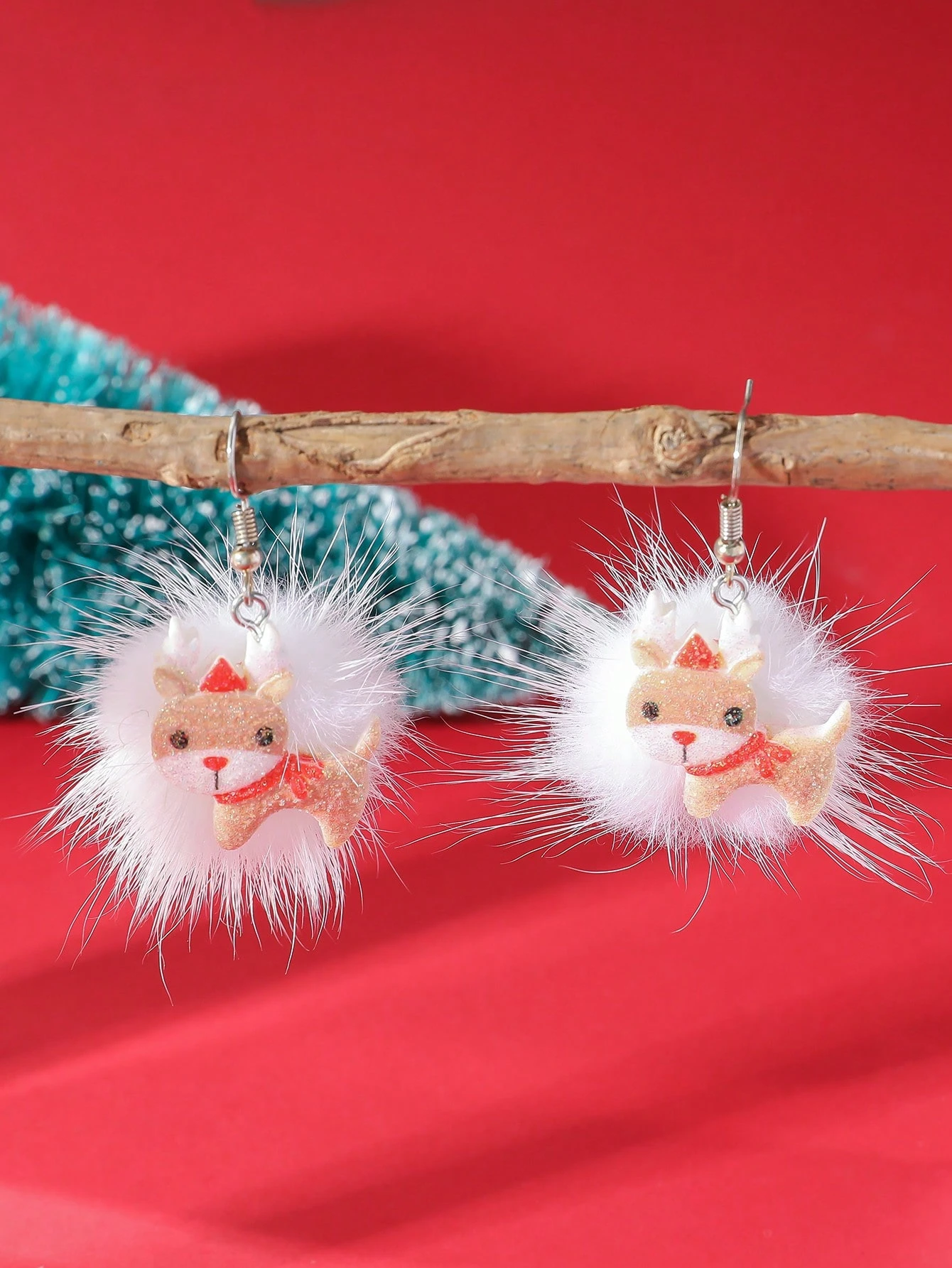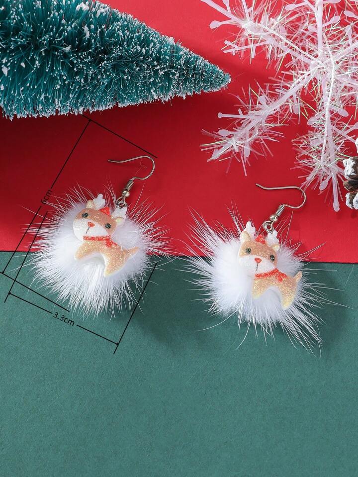 1 paire Boucles D'oreilles Dessin Animé Mignon Chien Avec Pompon Boule Noël