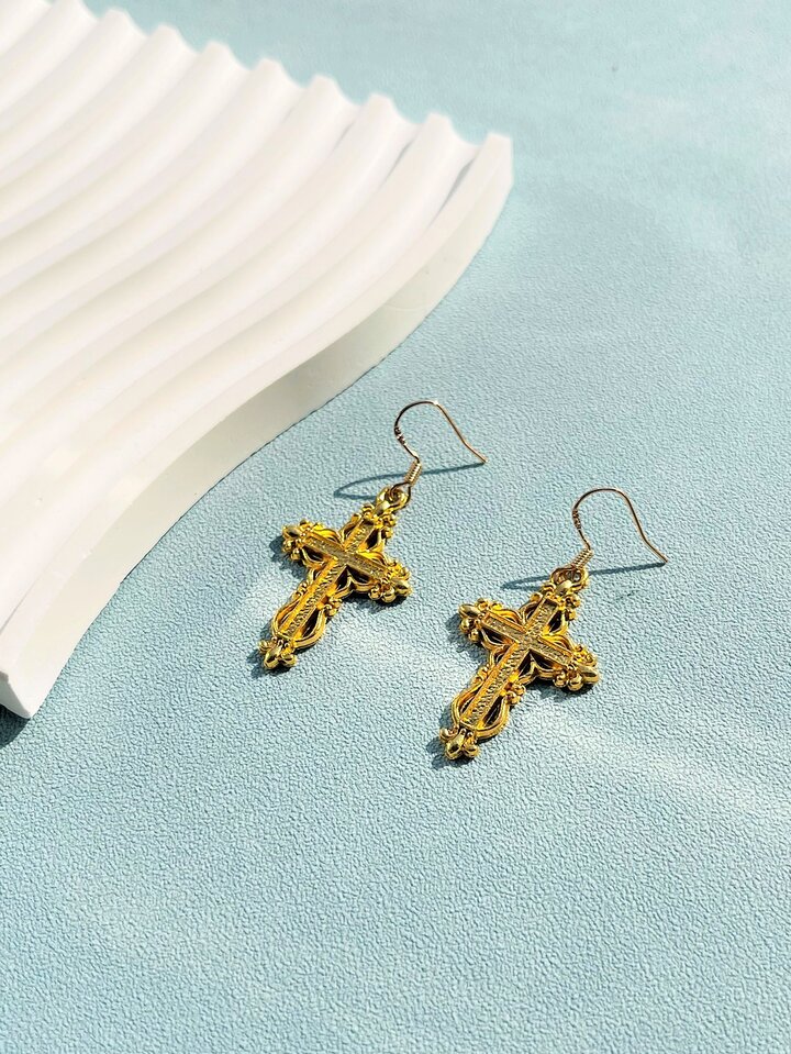 1 paire Pendants D'Oreilles Design Croix À La Mode Pour Femme Pour Décoration Quotidienne