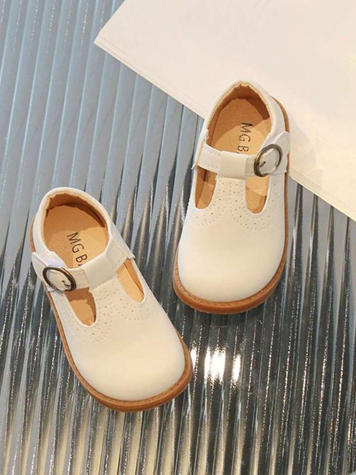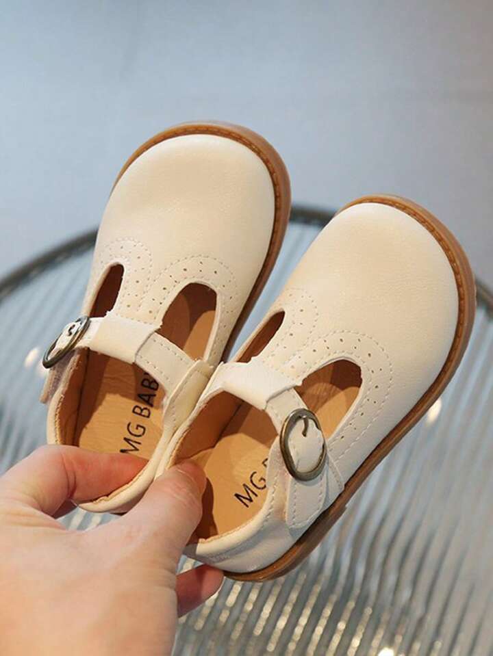 1 Paire Chaussures Plates Mary Jane Perforées Pour Filles Avec Décoration De Boucles