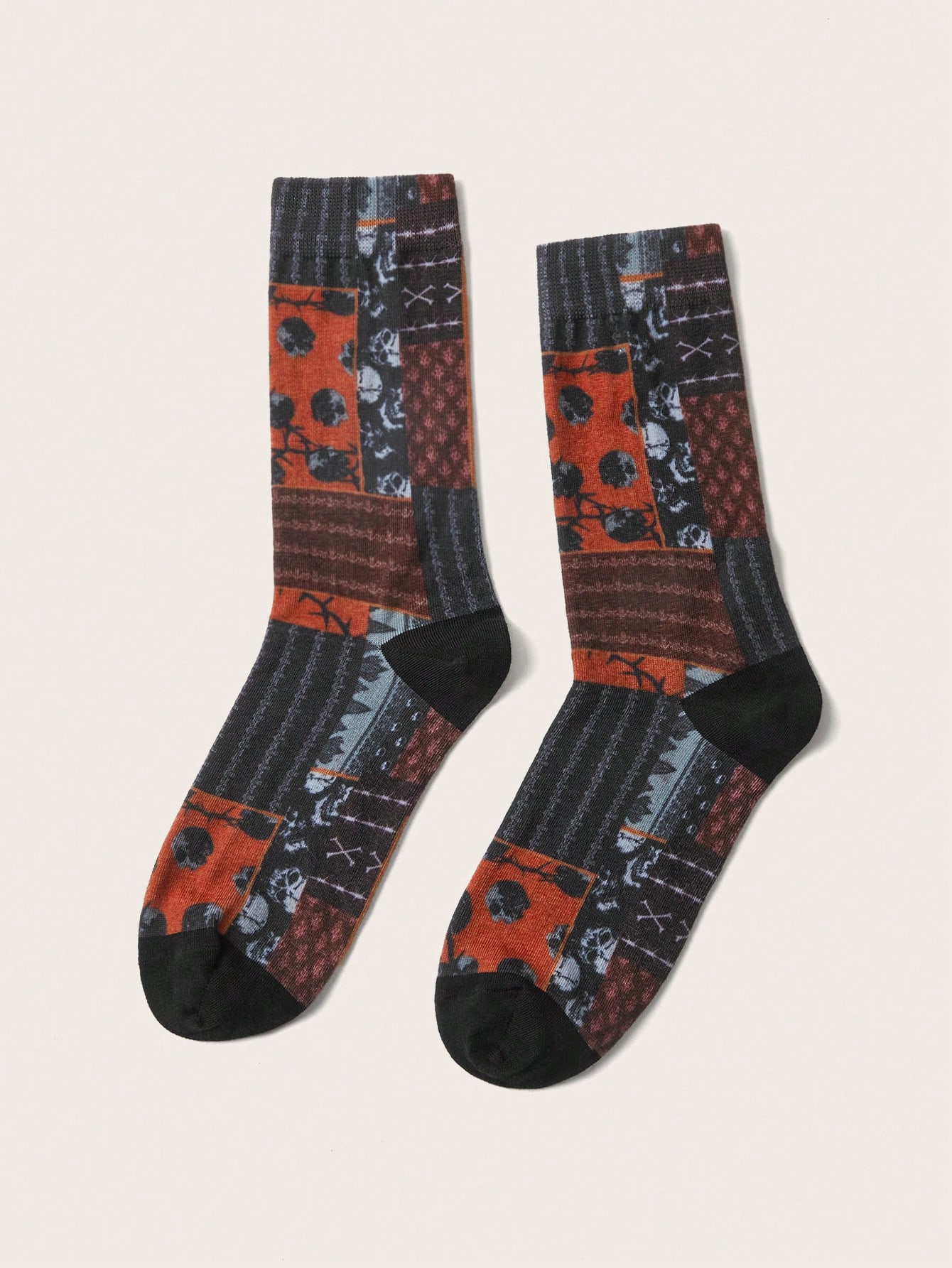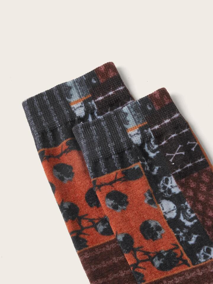 1 paire Chaussettes décontractées à motif de tête de mort pour femmes, pour la vie quotidienne
