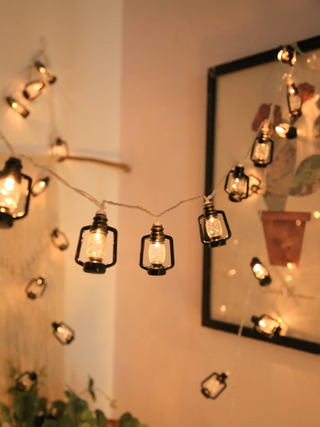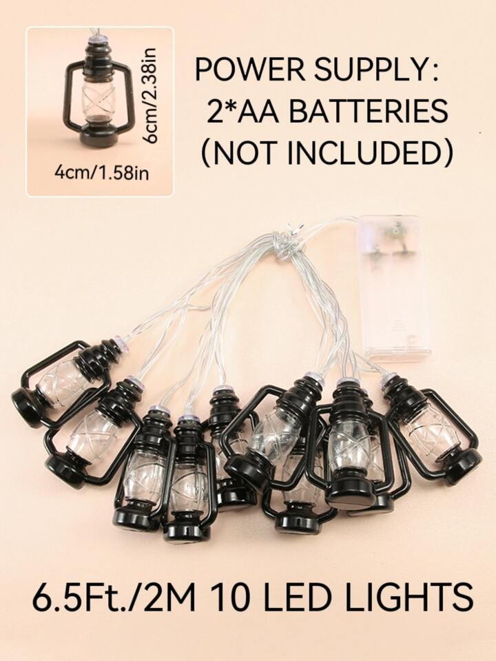 1 pièce Lampe à huile noire de 10 lumières de 2 m, lampe à kérosène décorative vintage pour l'ambiance de la chambre/dortoir, décoration de fête de Ramadan